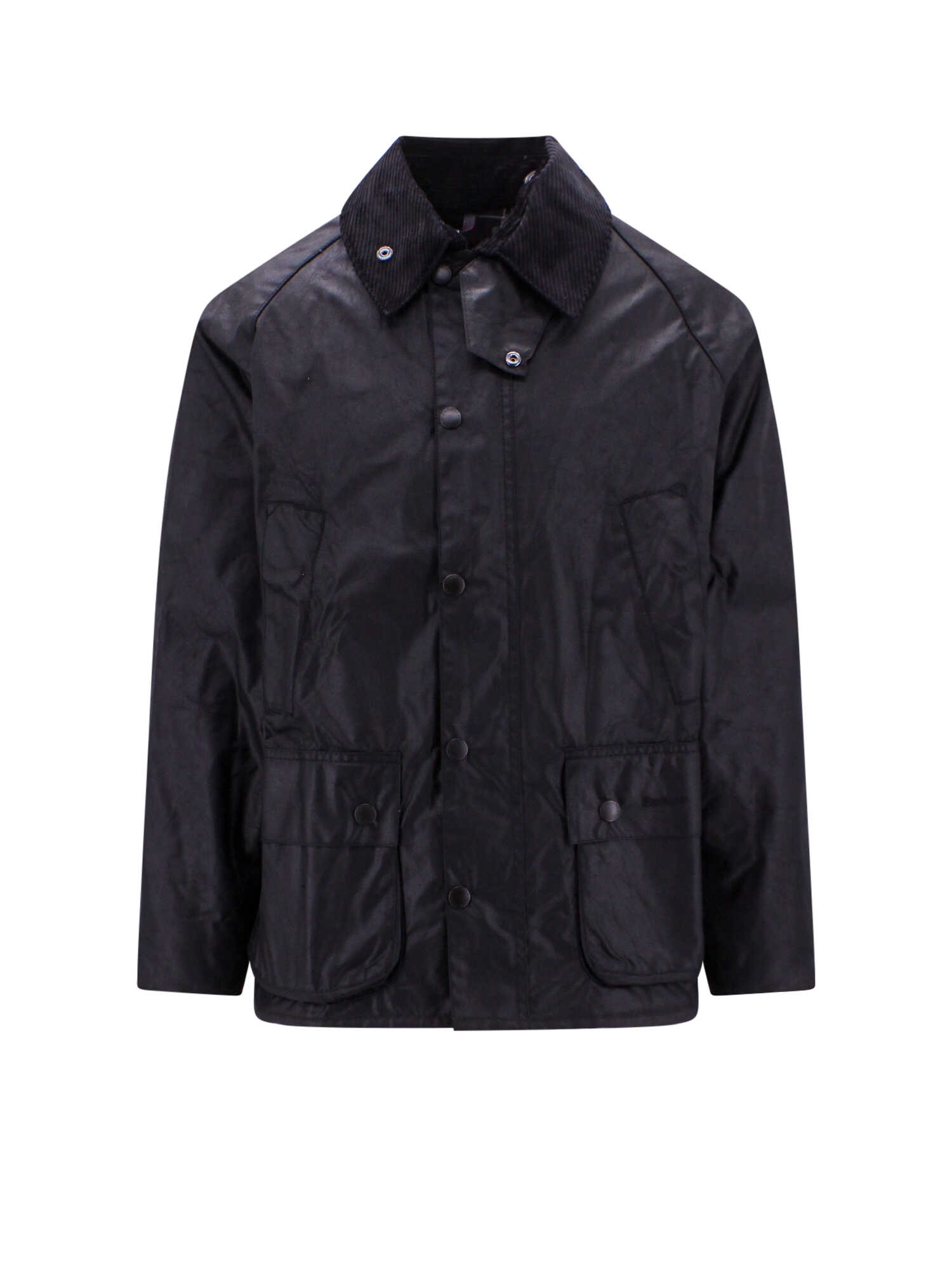 Stay warm and stylish with this black waxed cotton jacket from BARBOUR. Featuring a corduroy collar, front pockets with flap and buttons, and iconic madras lining, this jacket is not only fashionable but also practical. The embroidered Barbour logo adds a touch of sophistication. Made of 100% cotton, this jacket is both comfortable and durable. Available in FR size range. Custom tariff code: 62013090. Order yours today!