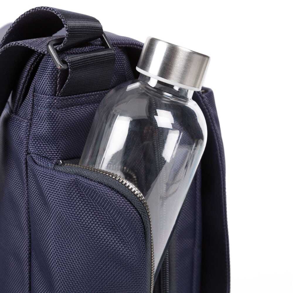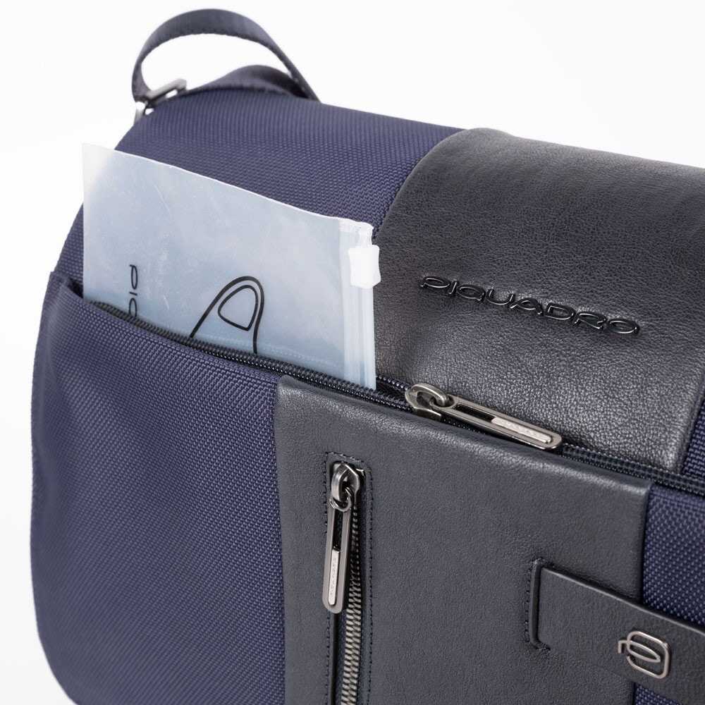 The Messenger By Piquadro is a stylish and functional bag suitable for everyday use. Made from 100% recycled nylon, it features a padded compartment for a 14 laptop, a foldable bottle holder, an internal cell phone pocket, and a fixed iPad holder. The bag is ready for CONNEQU and can be attached to a trolley with a cord. With its sleek design and versatile features, this bag is perfect for anyone on the go.