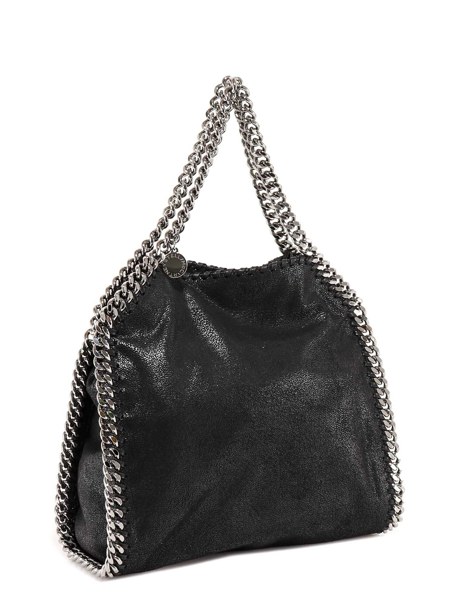 Upgrade your style with this stunning Falabella shaggy deer shoulder bag from STELLA MCCARTNEY. Made in Italy with recycled polyester, this black bag features a magnetic button closure, a metal logo charm, and an internal pocket. The iconic chain adds a touch of elegance to the versatile ONESIZE design. Custom Tariff: 42022210. Make a conscious choice and add this statement piece to your collection.