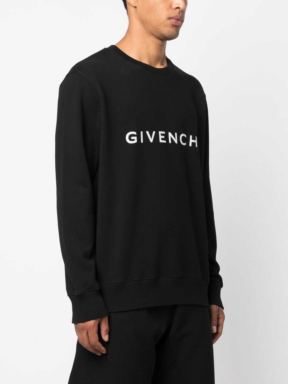 Stay stylish with this black cotton sweatshirt from GIVENCHY. It features a ribbed crew-neck, long sleeves with cuffs, and a logo print on the front. The slim fit design and 100% cotton material ensure both comfort and style. Perfect for men, this sweatshirt belongs to the Clothing > Sweatshirts category. Add a touch of elegance to your wardrobe with this trendy piece.