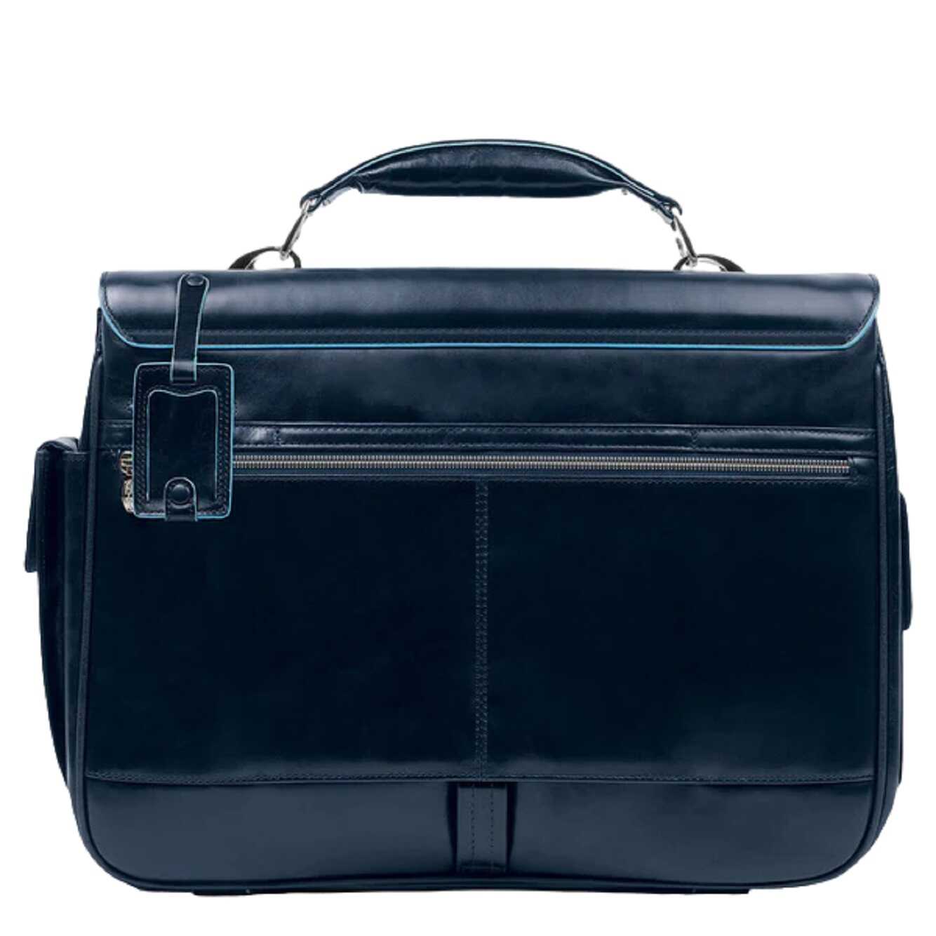 Stay organized and stylish with the Folder By Piquadro handbag in Blue. Made from 100% Leather, this bag features a computer briefcase and ipad holder with external pockets, pen holder, and umbrella holder. Perfect for the modern man on the go. Size: 43x33x13 cm.