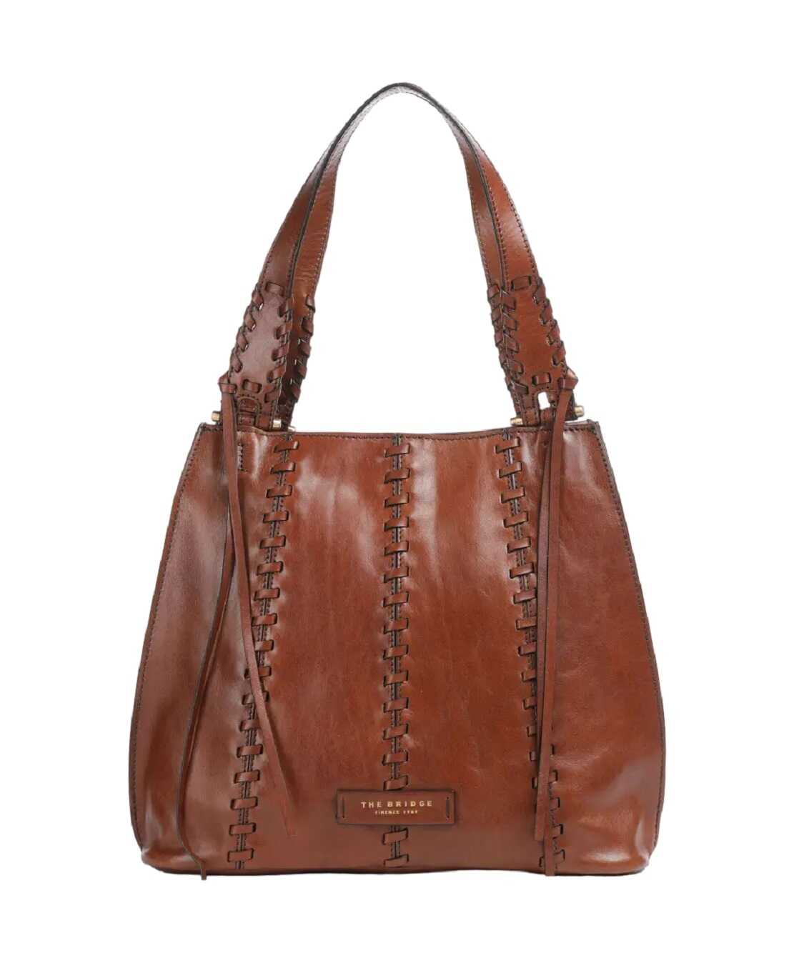 Elevate your style with the exquisite Hobo Bag from THE BRIDGE. Crafted from fine grain cowhide leather, it features a spacious interior for A4 documents, gold brushed metal finishes, and a sophisticated brown color. Perfect for any occasion.