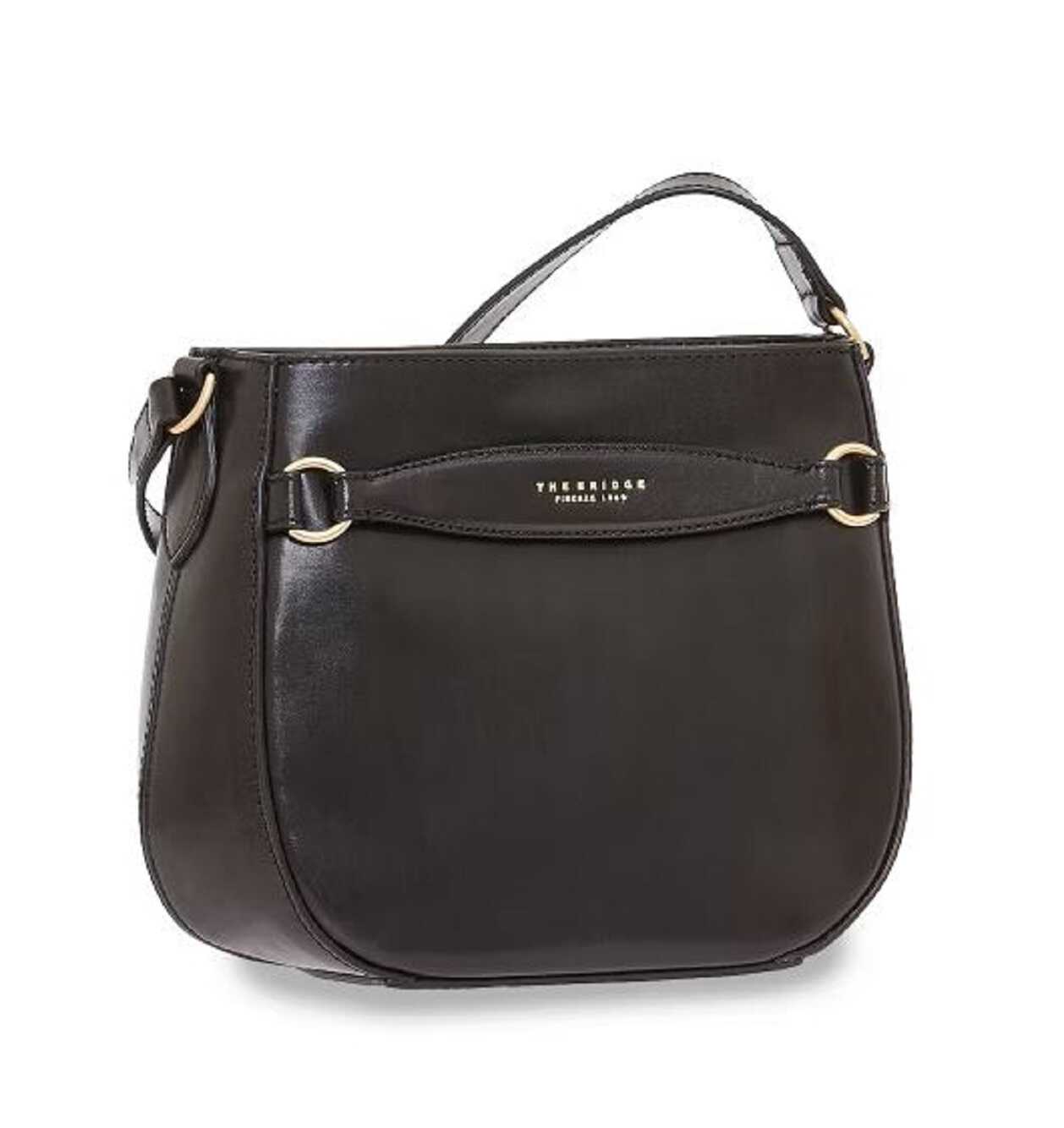 Experience luxury and practicality with The Bridge's Hobo Bag. Made with 100% genuine leather, this handbag features a spacious compartment to fit all your essentials in style. The sleek black color adds a touch of sophistication to any outfit. Perfect for the modern woman on the go. Dimensions: 26x30x13 cm.