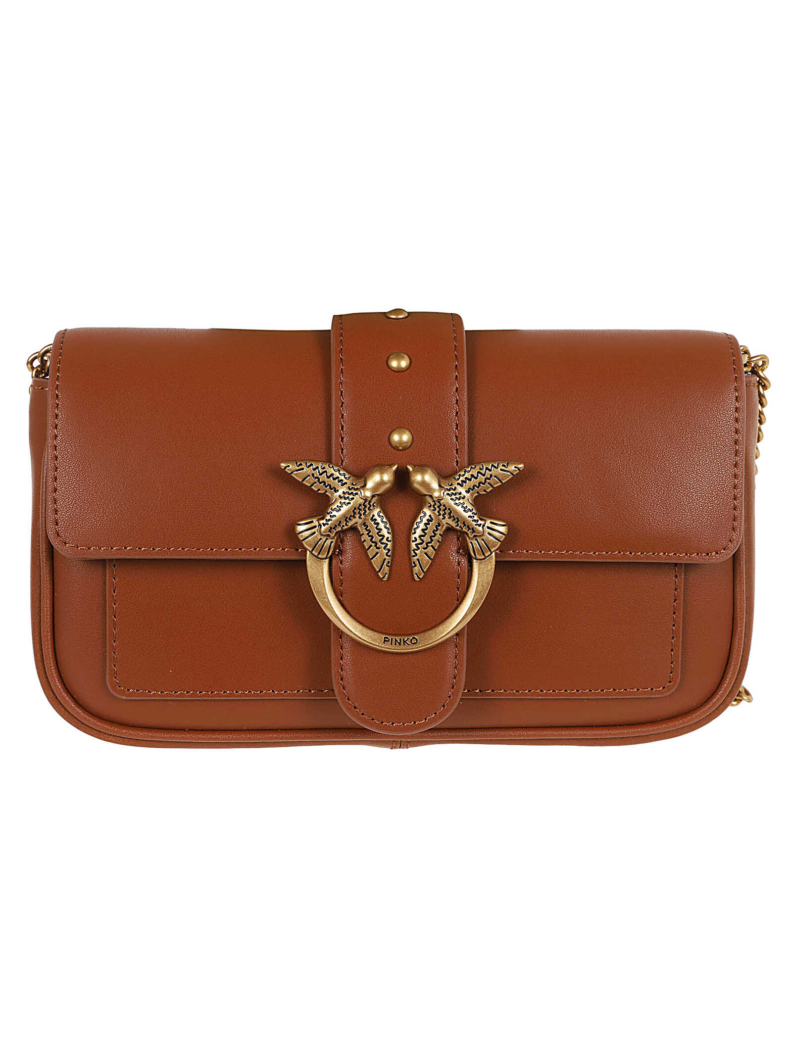 Elevate your style with the PINKO 100061.A0F1 crossbody bag in luxurious brown leather. This chic bag features a fabric-lined interior with multiple pockets and credit card slots. The leather pod closure is adorned with studs and a diamond-cut metal buckle. Carry it by hand or on the shoulder with the removable chain strap. Dimensions: W4 x H12 x L20cm.