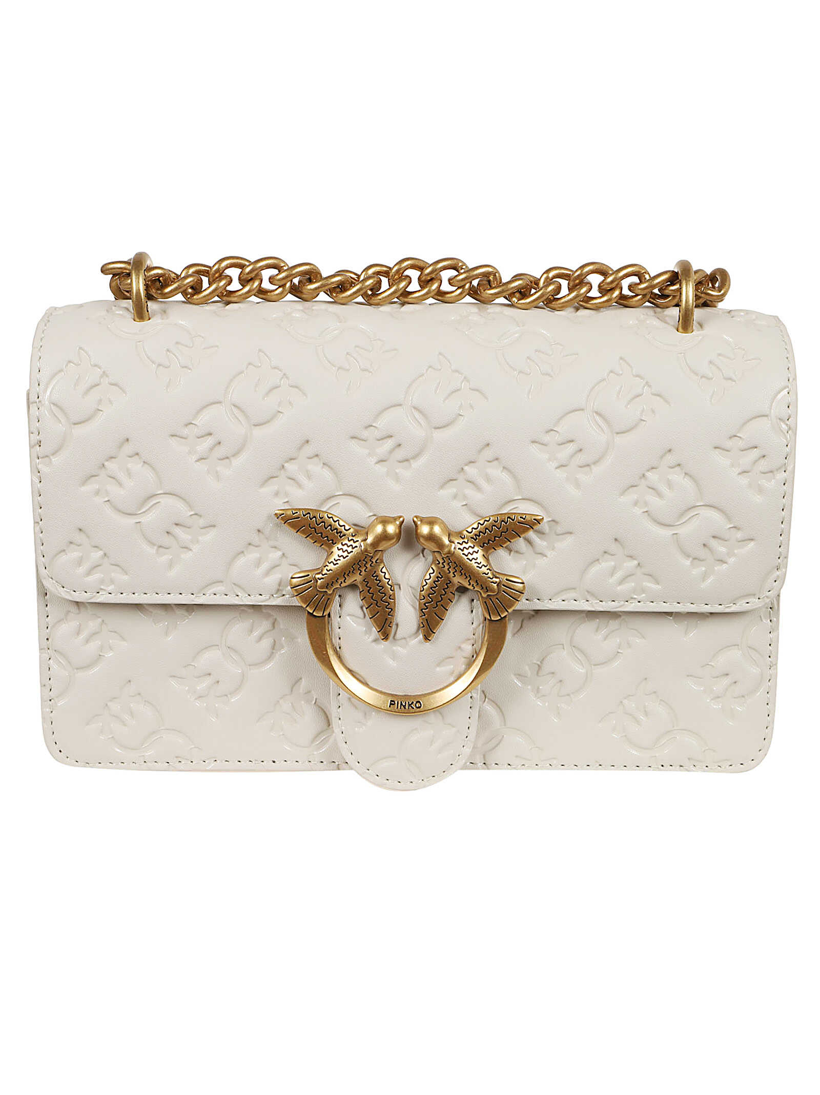 Elevate your style with the exquisite Pinko love bag. Crafted from luxurious leather, this cross body bag features a unique love birds monogram motif. The interior is designed with practicality in mind, including a leather wall pocket and zip closure partition. The shoulder strap offers versatility with a metal chain and adjustable leather strap. Complete your look with this statement piece from Pinko. Dimensions: W21 x H12 x D6cm.