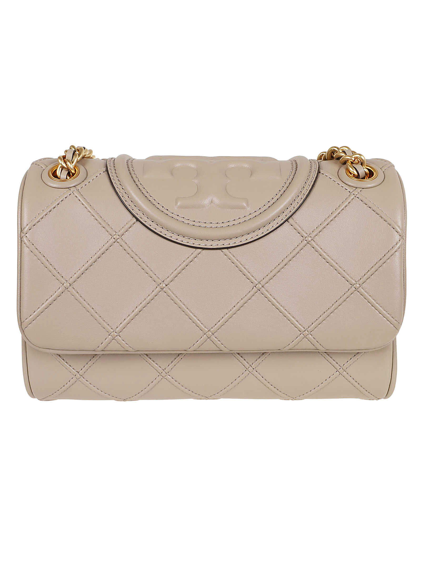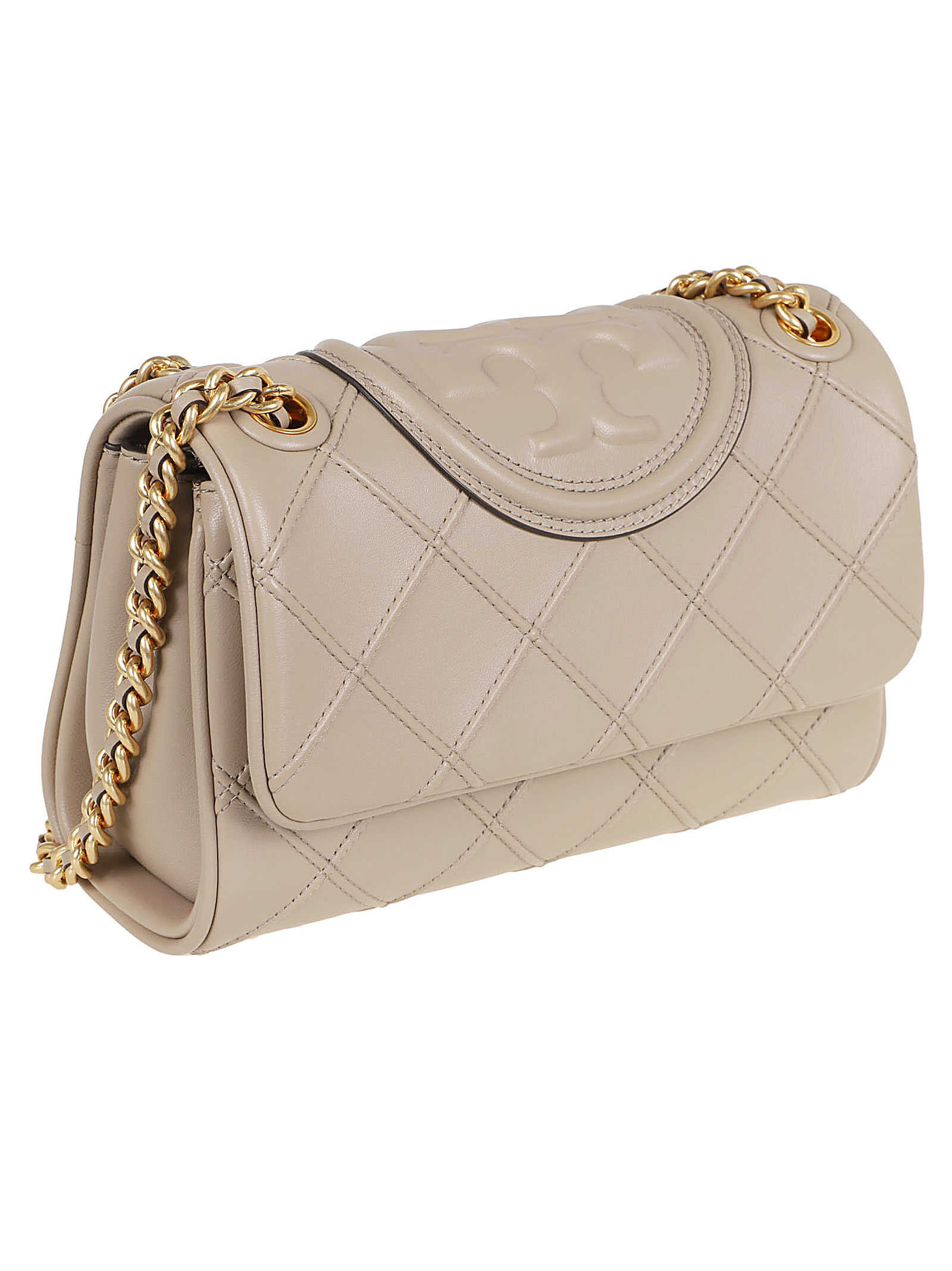 Elevate your style with the pink & purple Fleming shoulder bag by Tory Burch. Crafted from luxurious calfskin, this bag features an embossed logo, flap closure, and adjustable shoulder straps. Perfect for the modern woman on-the-go. Dimensions: W22 x H14.5 x D8cm. Material: 100% Lamb Leather. Add a touch of elegance to your wardrobe with this must-have accessory.