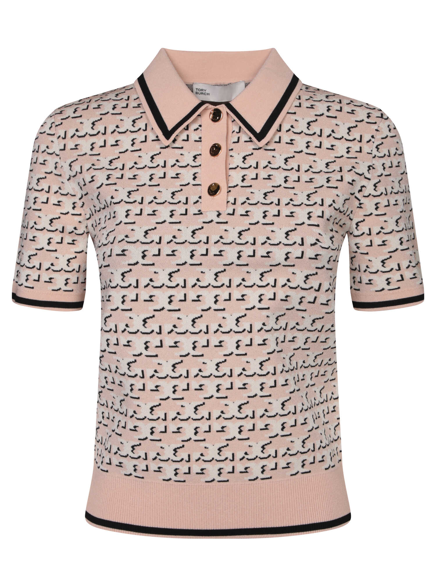 Elevate your wardrobe with this stunning Beige TORY BURCH T-Shirt. Crafted from a luxurious blend of 83% Viscose and 17% Polyester, this polo features a chic logo jacquard fabric with a contrasting collar and sleeve ends. The three-button closure adds a touch of sophistication to this elegant and contemporary design. Perfect for adding a refined touch to any outfit.
