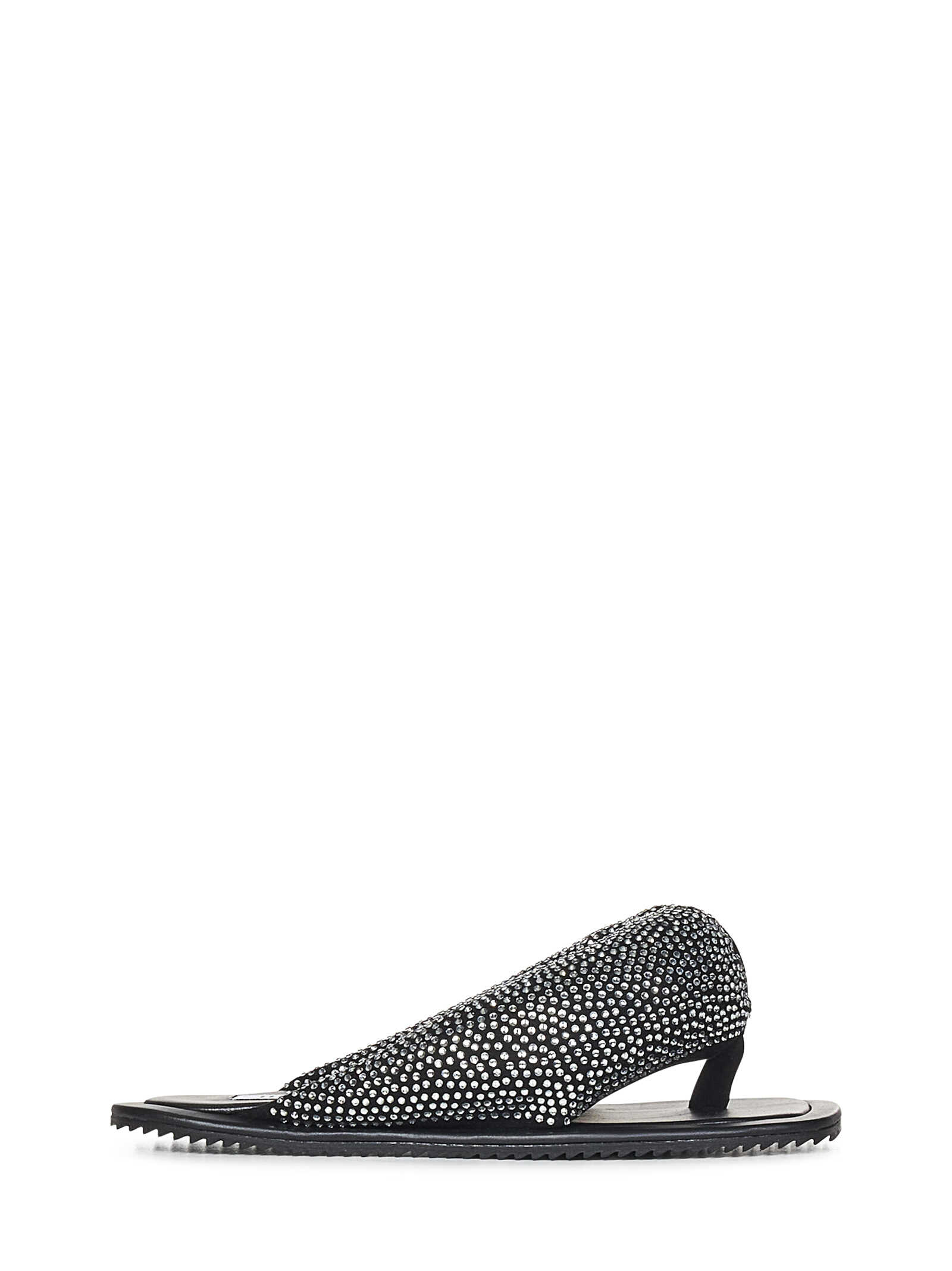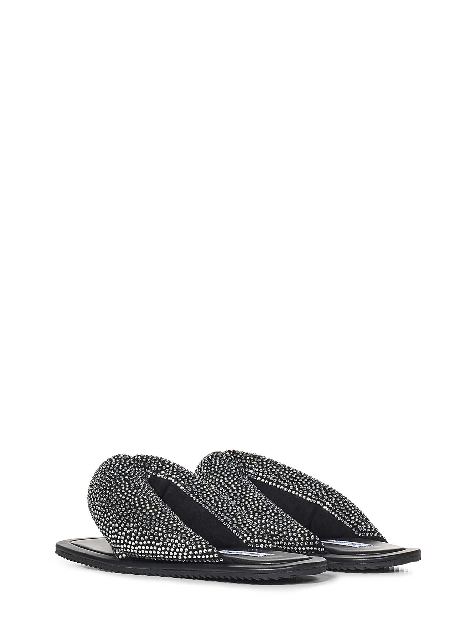 ''Indie Max'' flip-flops in black suede with heat-seal rhinestones on the upper.