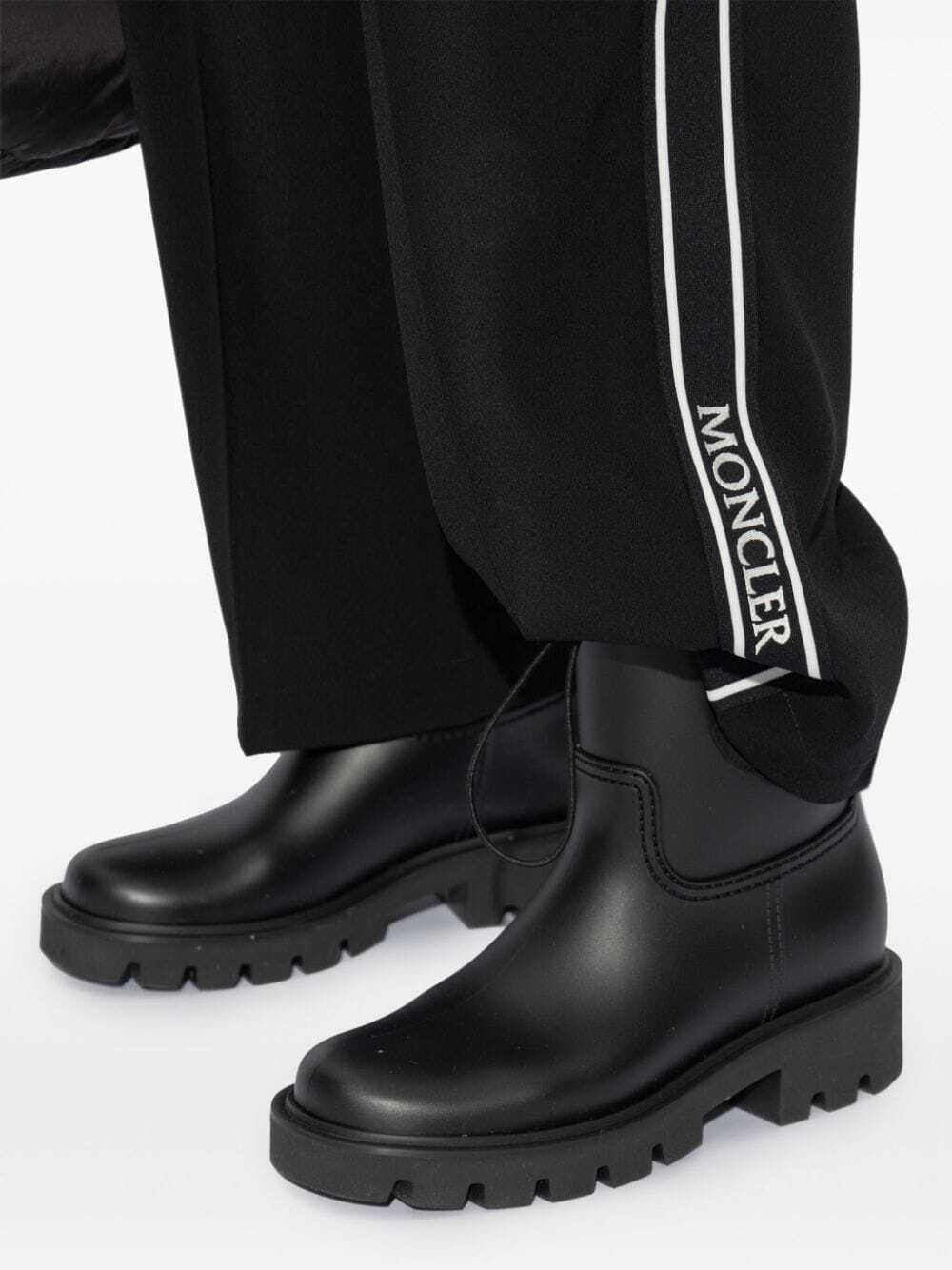 Step out in style with these chic Moncler Boots in classic black. Made with high-quality materials including PVC, nylon, and real leather, these ankle boots are both fashionable and durable. Elevate your look with the iconic MONCLER brand.