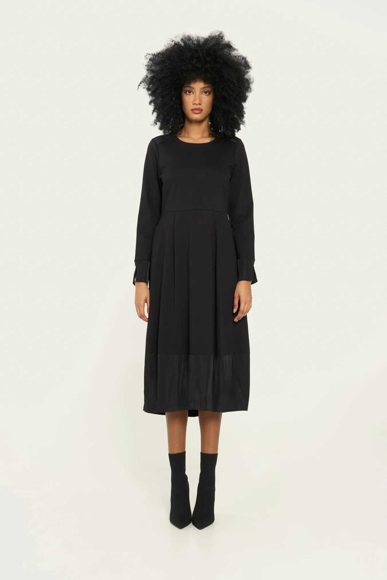 Elevate your wardrobe with this stylish Balloon Skirt Dress from VICARIO CINQUE. Featuring a chic black color, a loose fit design, and crafted from a blend of premium materials, this dress is perfect for any occasion. The Milano Stitch adds a touch of elegance, while the side pockets and taffeta hem and cuffs provide both style and functionality. Make a statement with this must-have piece.
