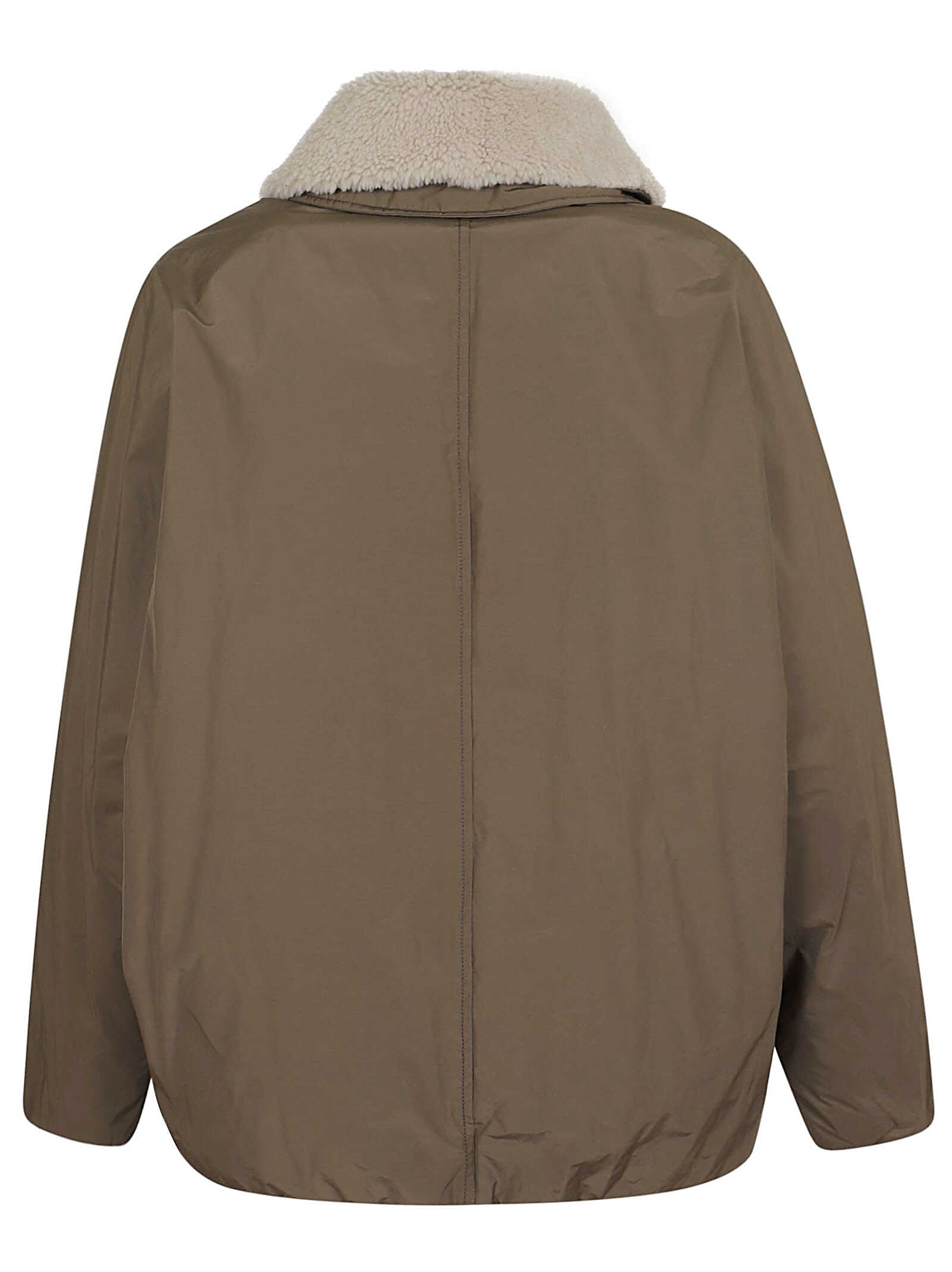 Stay warm and stylish with this luxurious Brunello Cucinelli down jacket. Featuring a sleek brown color and a unique shearling collar detail, this jacket offers both comfort and sophistication. Perfect for elevating your winter wardrobe. Don't miss out on this must-have piece!
