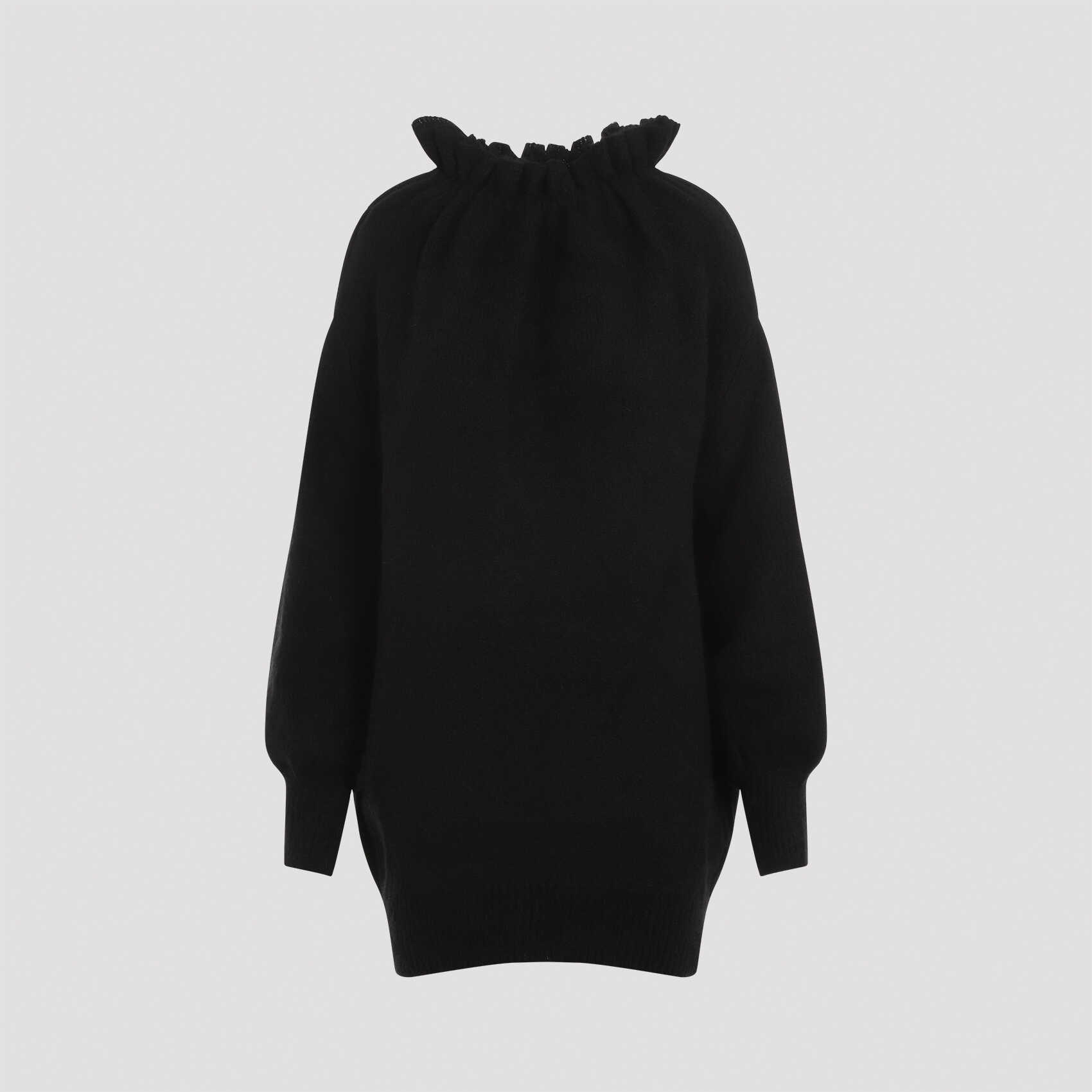 Elevate your style with the SIMONE ROCHA MIMK1.0657 sweater. This black jumper is crafted from a luxurious blend of alpaca, baby alpaca, merino, and recycled nylon. Featuring a gathered pleated neck, dropped shoulders, and long sleeves, this oversized sweater is a must-have for your wardrobe. Stay cozy and chic in this statement piece.