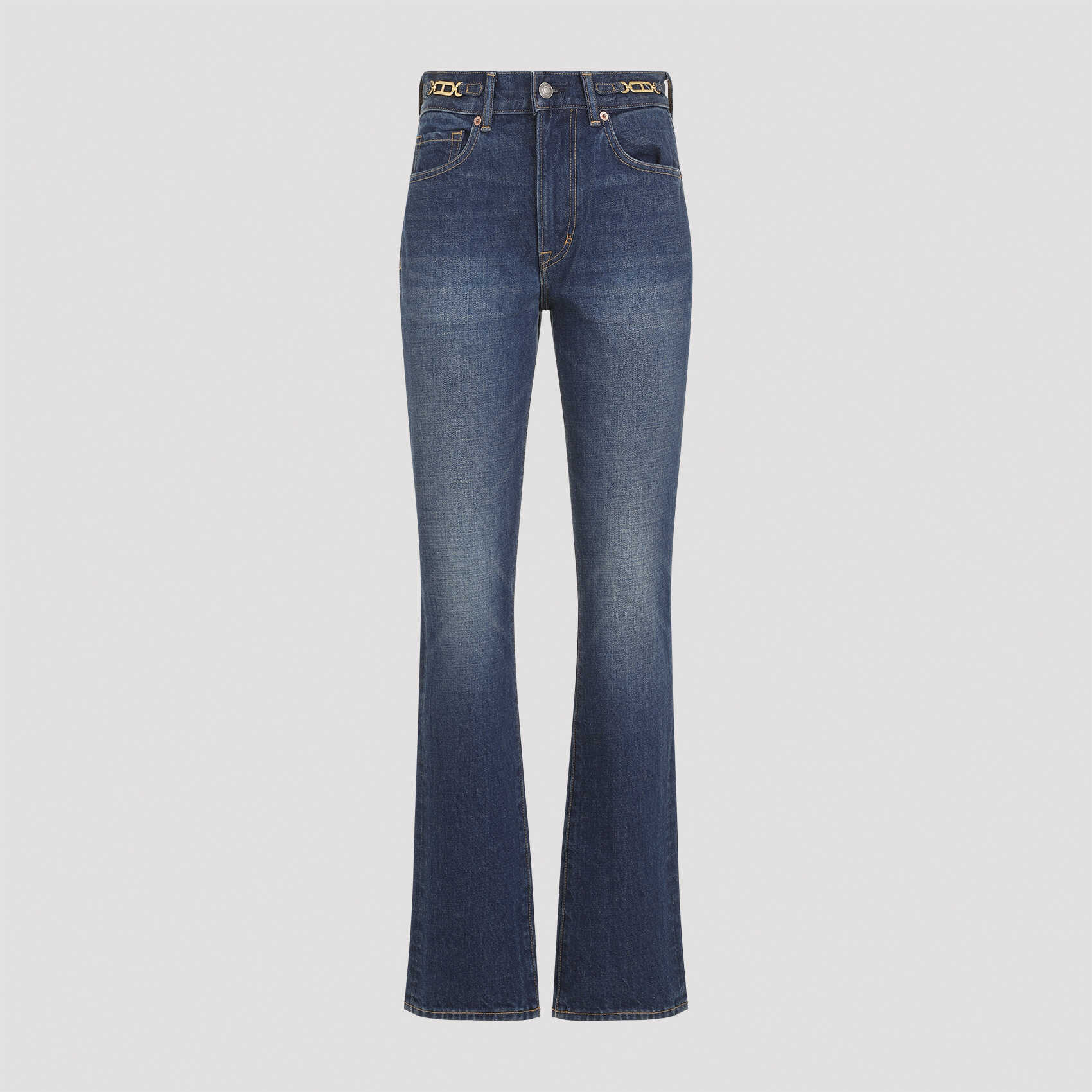 Elevate your denim game with these chic TOM FORD PAD116.DEX226 jeans. Made from 100% cotton in a stunning blue hue, these high-waisted jeans feature golden-toned logo details, a classic five-pocket design, and a flattering straight leg silhouette. Perfect for adding a touch of luxury to your everyday look.