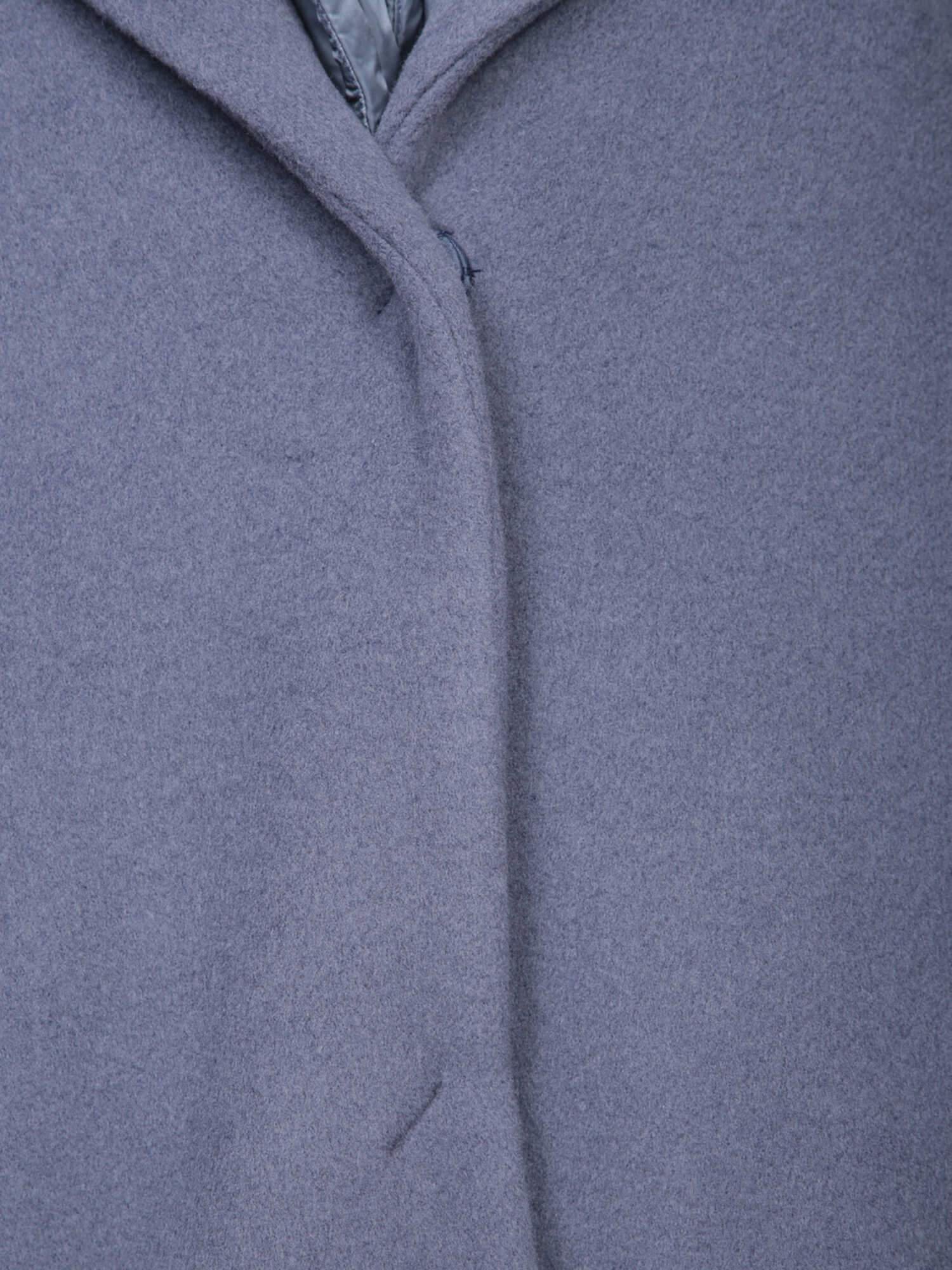 Elevate your style with this stunning HERNO Blue Jacket. Crafted with a luxurious blend of wool and silver nylon, this jacket combines practicality and elegance seamlessly. The high collar with a hood adds a modern touch, making it perfect for any urban setting. Stay warm and chic in this must-have piece.