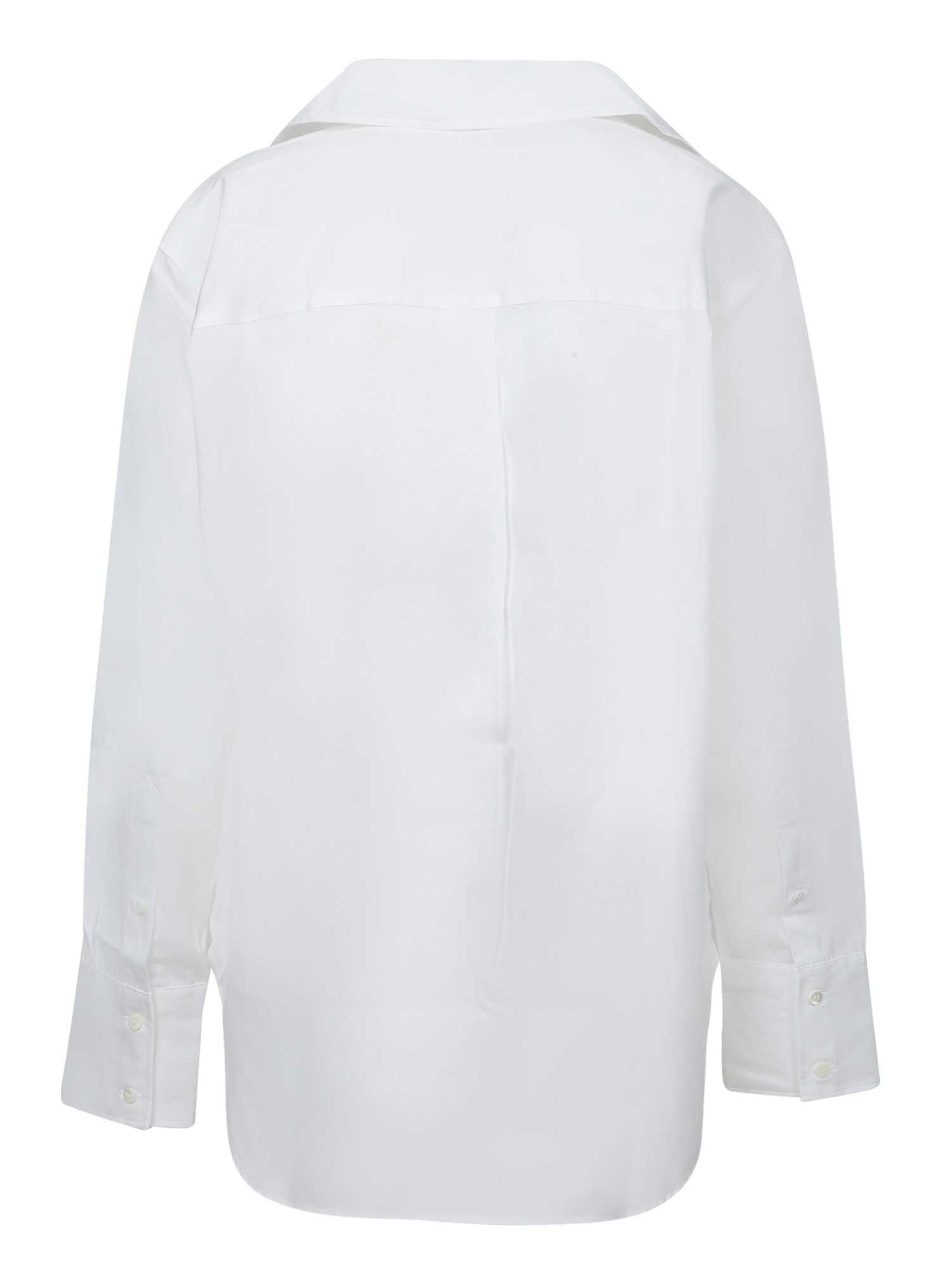 Elevate your wardrobe with the J.W. Anderson White Shirt. This oversized cotton piece features a striking asymmetric collar and buttoned cuffs, merging classic style with modern flair. Perfect for those who appreciate unique, contemporary fashion.