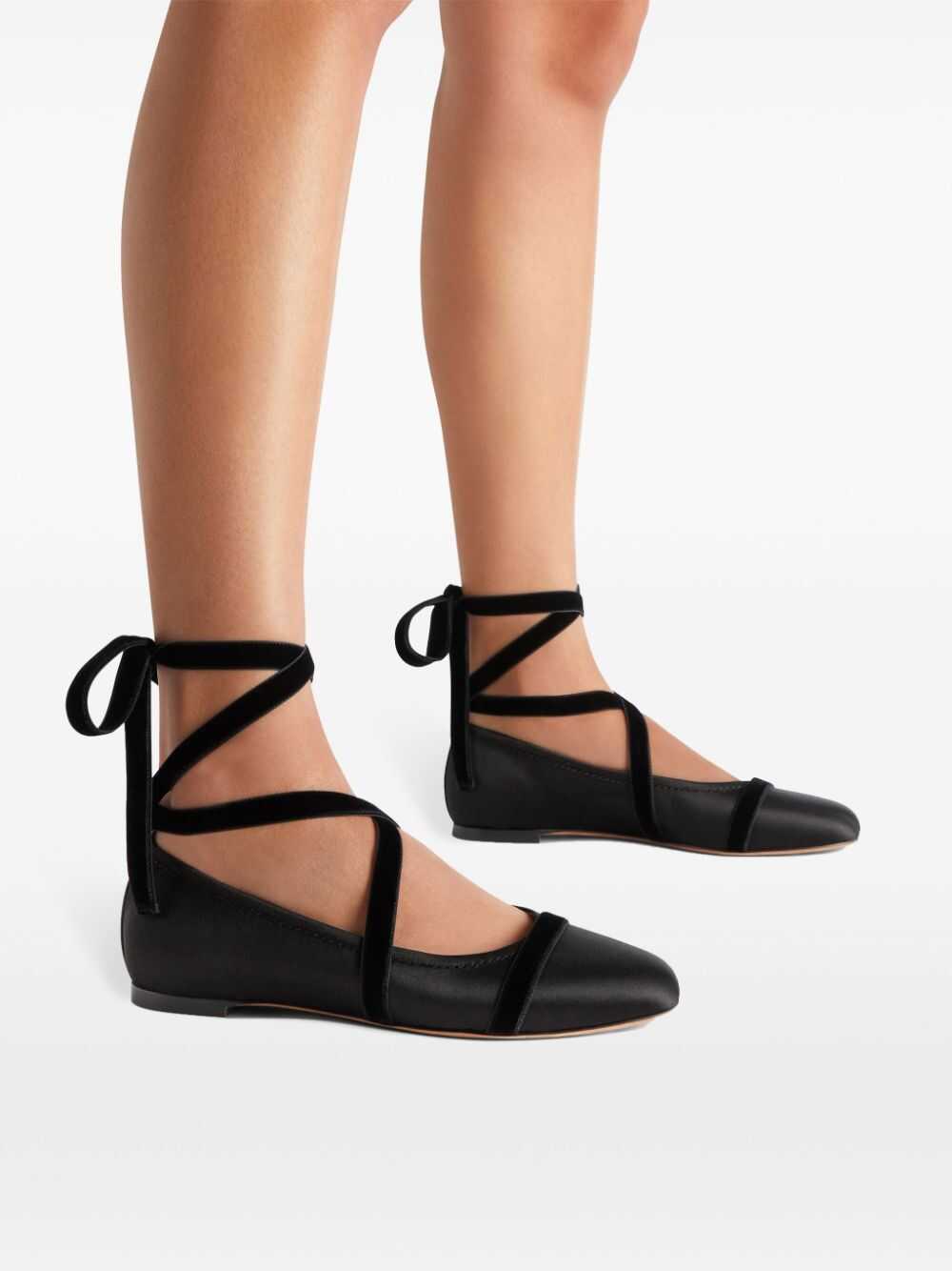 Step into elegance with the Malone Souliers Flat Shoes in striking black. Crafted from luxurious satin and velvet, these ballerinas are perfect for any occasion, combining exquisite style with comfort. Elevate your footwear collection today!