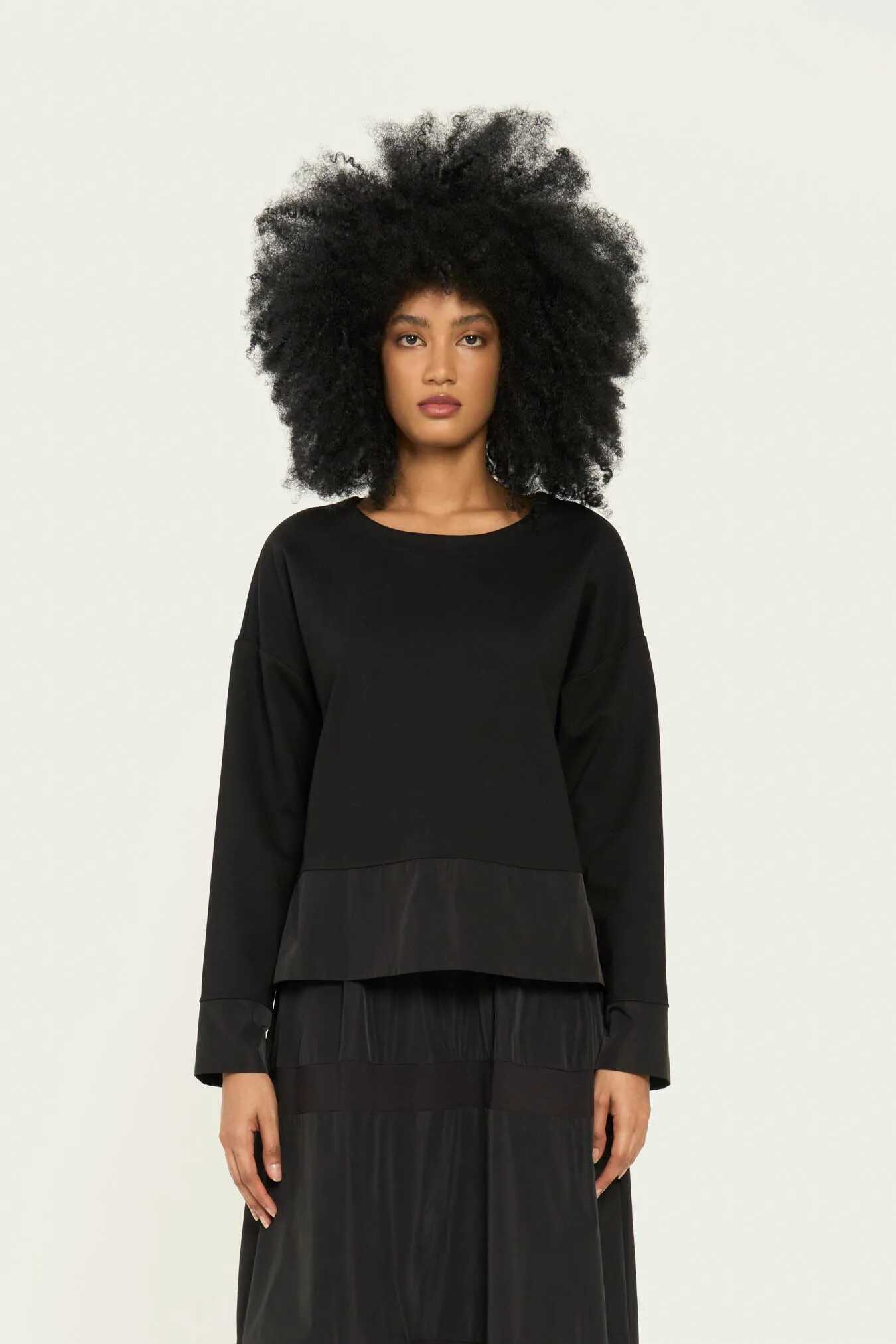 Elevate your style with this chic black oversized viscose T-shirt by VICARIO CINQUE. The taffeta lacing detail adds a touch of elegance to the regular fit design. Made with a luxurious blend of viscose, polyamide, spandex, and polyester, this T-shirt is perfect for a casual yet sophisticated look. Embrace comfort and style with this versatile piece.
