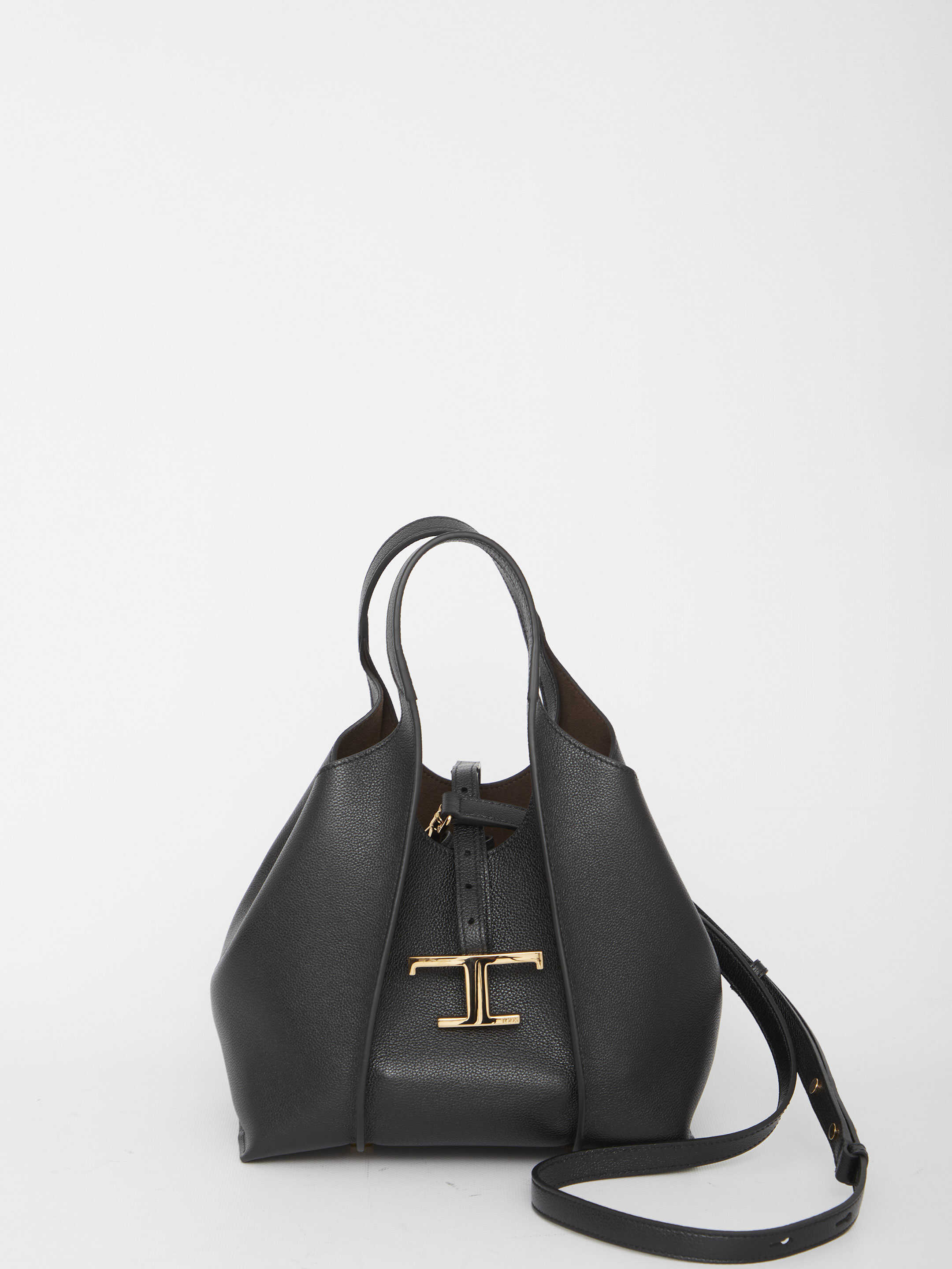 Introducing the T Timeless Mini shopping bag by TOD'S. Crafted from 100% leather in a stylish black color, this bag is a must-have for fashion-forward women. It features two top handles, a strap and snap button closure, and a single interior compartment with a detachable zipped pouch. With dimensions of 25x30x14cm, it offers ample space for your essentials. Elevate your style with this timeless accessory.