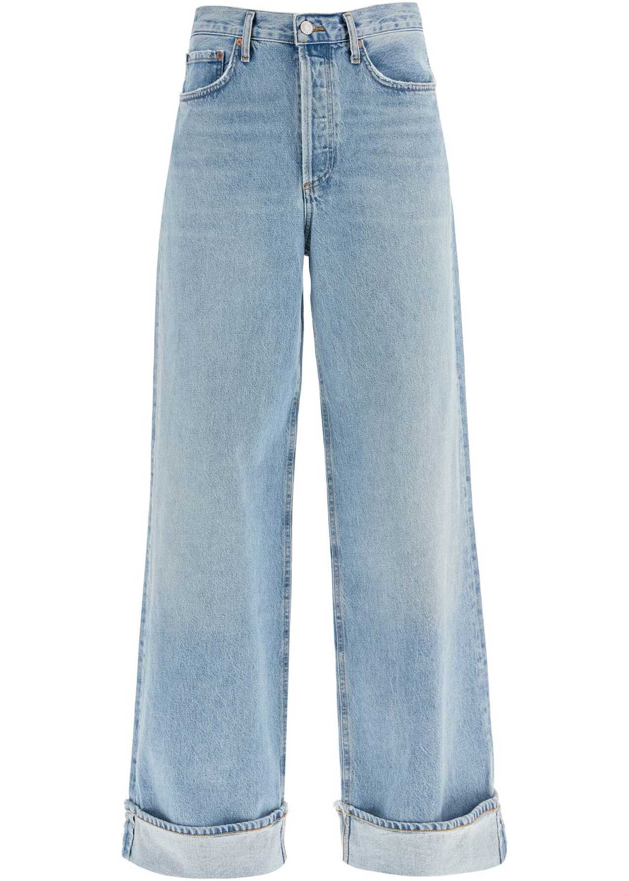 Agolde jeans crafted in dark-washed regenerative cotton denim with five-pocket design. They feature front fastening with button fly, belt loops and distressed detailing. Cuffed wide leg. The model is 177 cm tall and wears size 26.