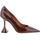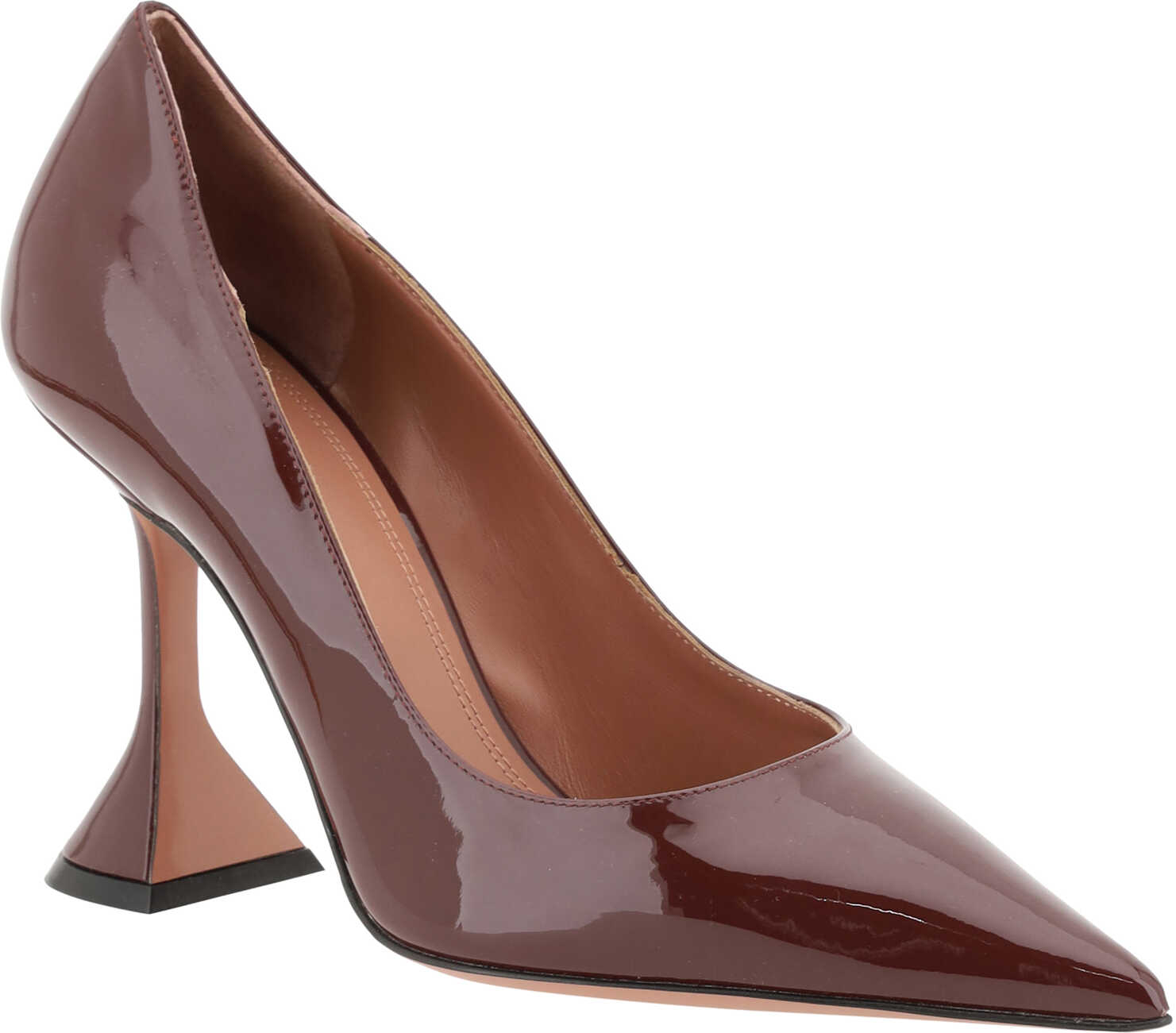 Leather Ami Pumps by Amina Muaddi, almond toe front, geometric leather heel, patent leather design, press-stamped logo leather insole.
