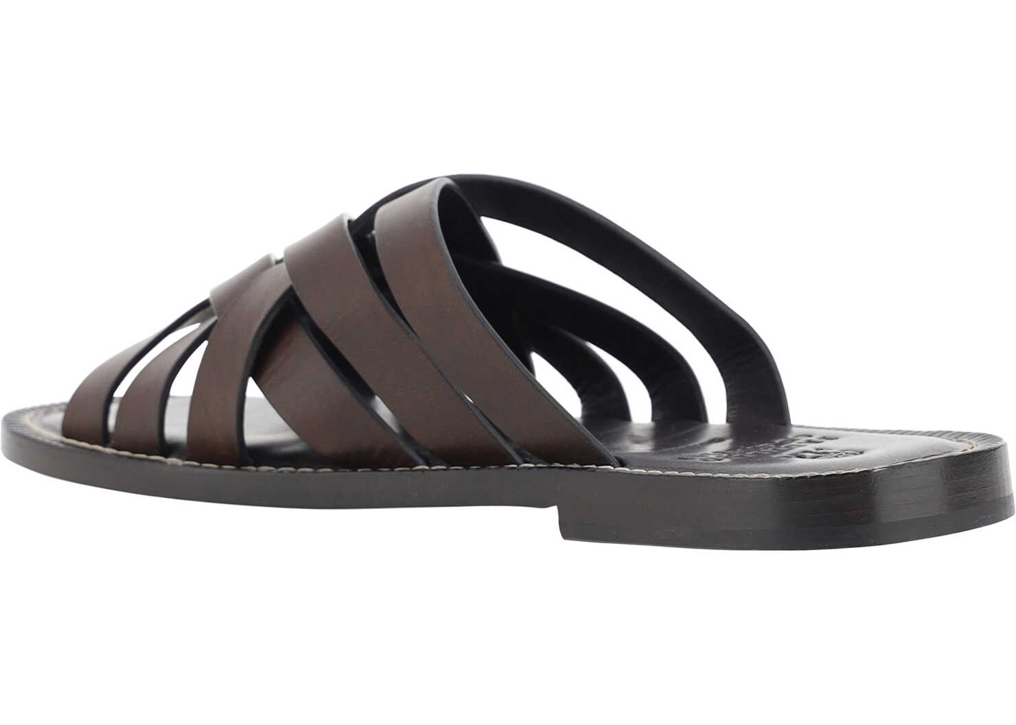 Brunello Cucinelli's leather Sandals exemplify timeless elegance and fine craftsmanship. Characterized by a slight leather block heel, they feature a woven weave on the front upper that lends a touch of sophisticated lightness. The logo-embossed insole adds a distinctive detail, making them perfect for those seeking classy, comfortable and refined footwear.