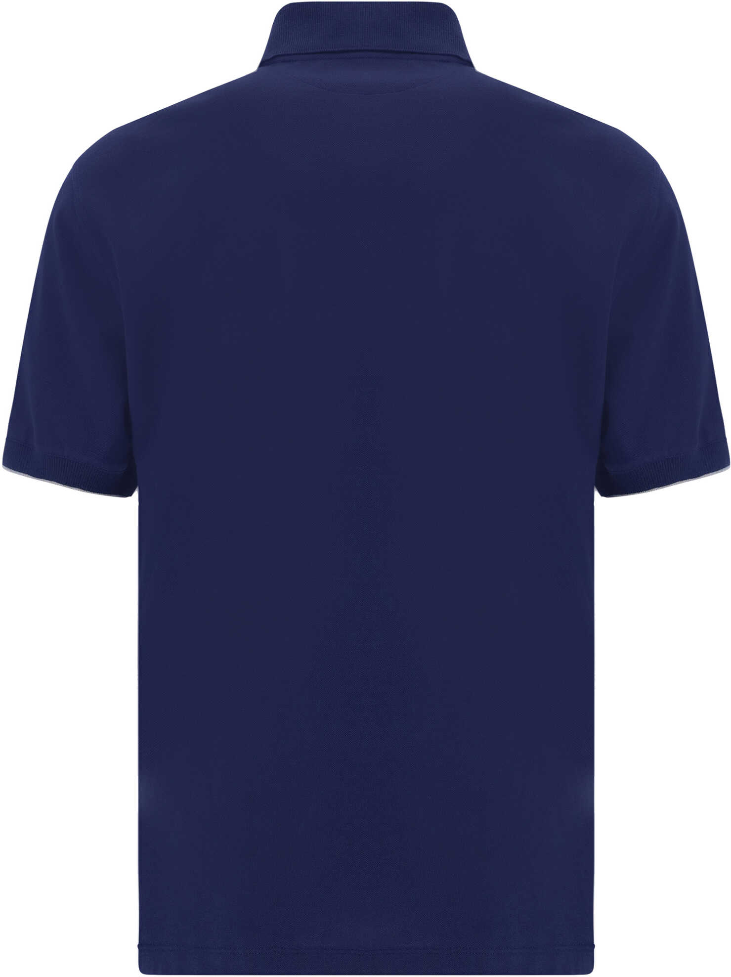 Cotton Polo Shirt by Brunello Cucinelli, featuring classic ribbed collar, front buttons, contrasting iconic brand logo on front, ribbed sleeves with contrasting piping, monochrome pattern, regular fit.