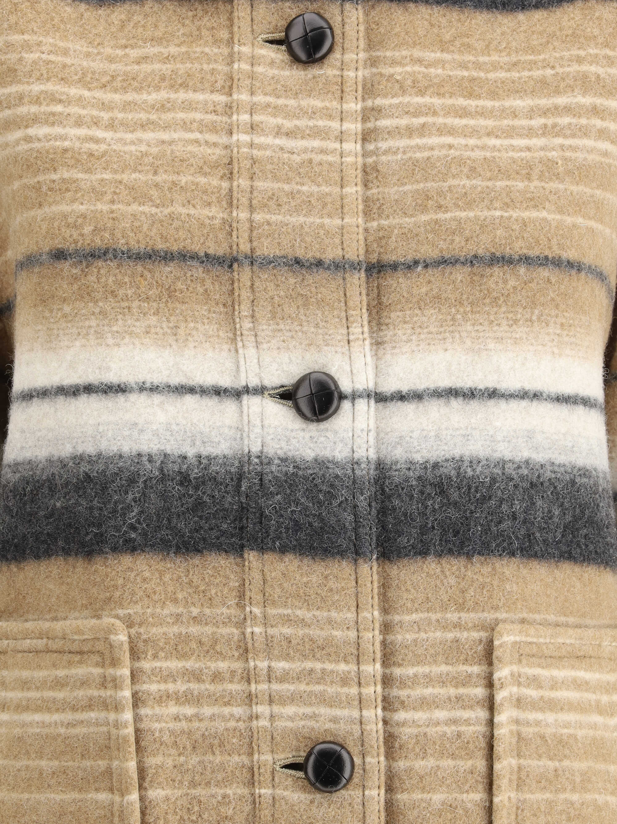 Wool Dayvi-ga Jacket by Marant Etoile featuring a shirt style, a classic leather collar, a button front closure, two welt patch pockets on the front, a striped pattern, and a regular fit.