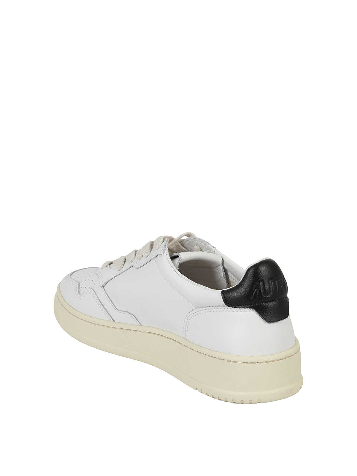 Autry Sneaker in white leather, side logo, on the back and on the tongue, black insert on the back, perforated toe, rubber sole.