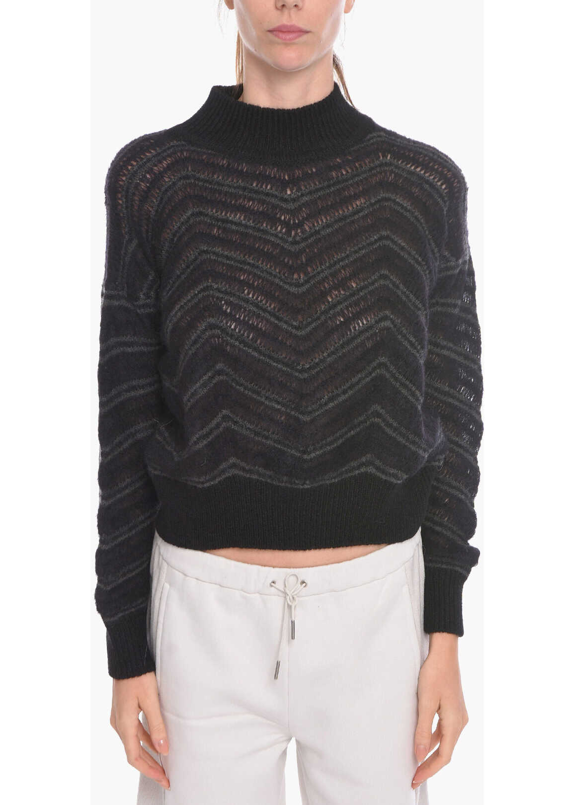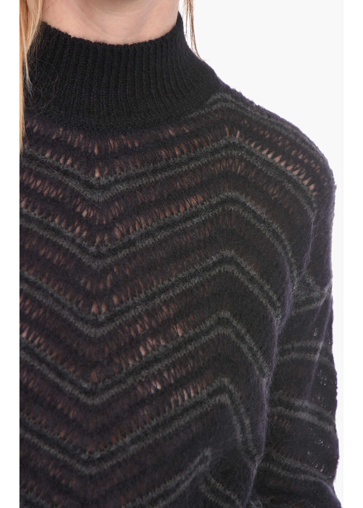 Long sleeves Printed pattern Turtleneck Black Made in Italy Autumn-Winter Materials: 54%WP 36%WV 10%PA Product code: P534115 Model is wearing size 40 Model measurements Height: 180 cm Chest: 86 cm Waist: 63 cm Hips: 91 cm