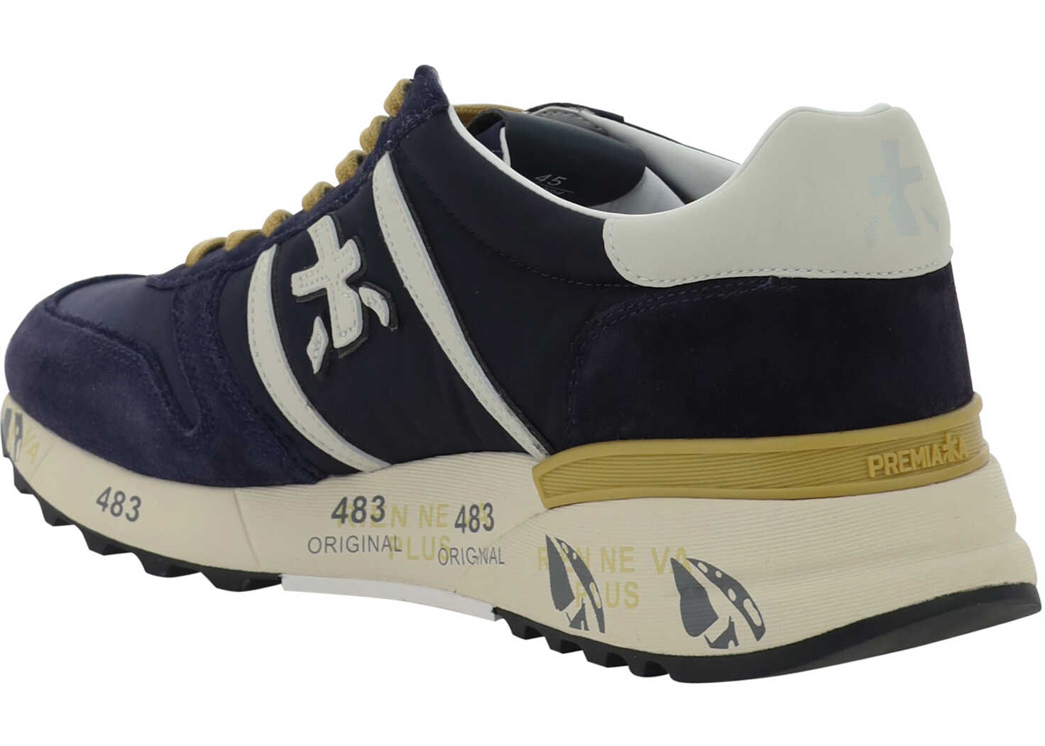 Leather Sneakers by Premiata, round toe, a lace-up front fastening, a logo-embossed insole, a panelled design with suede detailing, an iconic brand logo applied in contrast on side panel, and colourful lettering details on the sole.