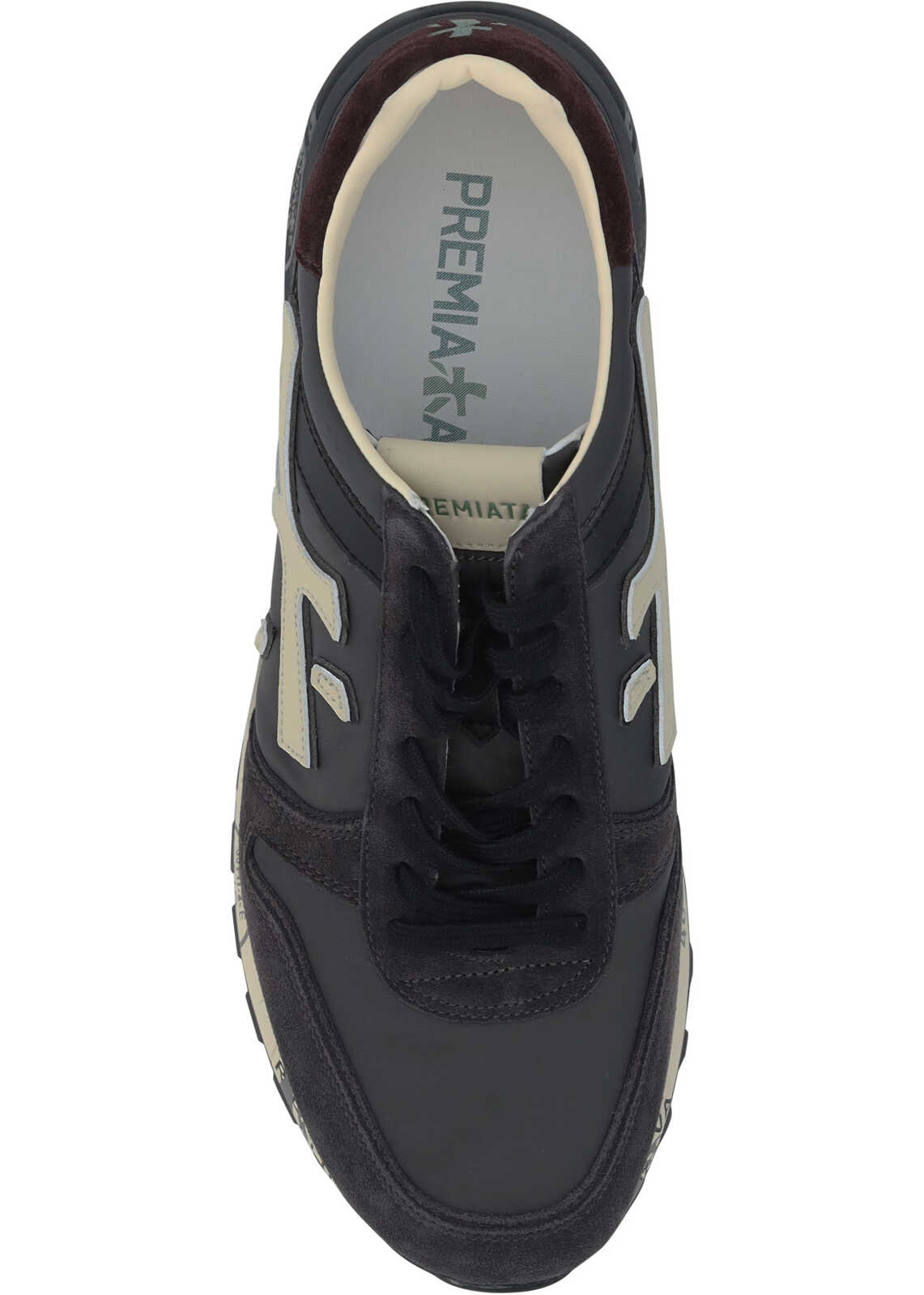 Leather Sneakers by Premiata, round toe, a lace-up front fastening, a logo-embossed insole, a panelled design with suede detailing, an iconic brand logo applied in contrast on side panel, and colourful lettering details on the sole.