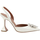 Leather Begum Pumps by Amina Muaddi, patent leather design, almond toe on front, geometric leather heel, elasticized slingabck detail at heel, rhinestone and glitter jewel applied embossed on toe, logo-embossed insole.