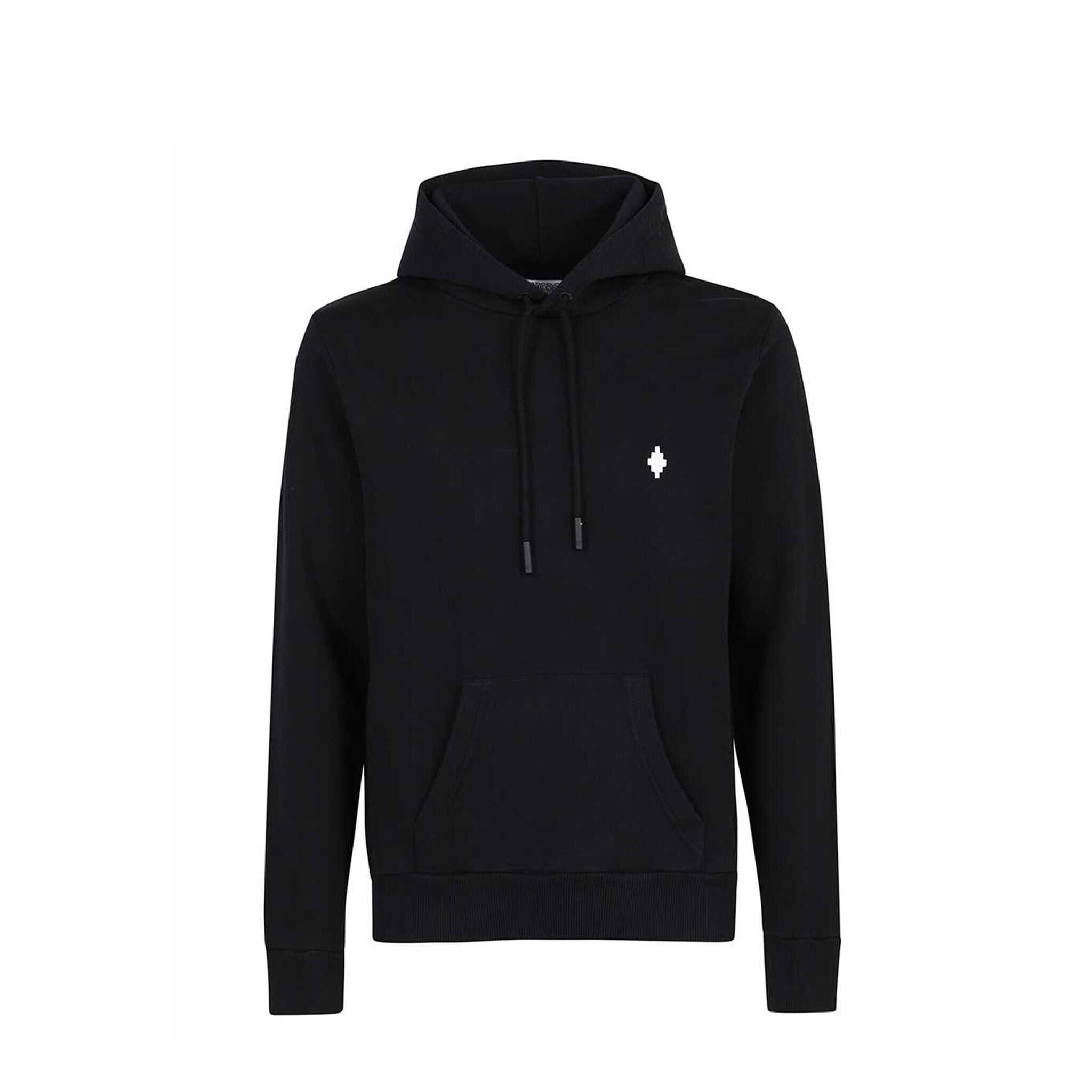 Stay stylish and comfortable with Marcelo Burlon County Of Milan Cotton Logo Sweatshirt. Made of 100% cotton, this black sweatshirt features ribbed trims, drawstring hood, front pouch pocket, front icon detail, and back logo detail. Machine washable and made in Italy. Perfect for any casual occasion. Order now and add a touch of luxury to your wardrobe.