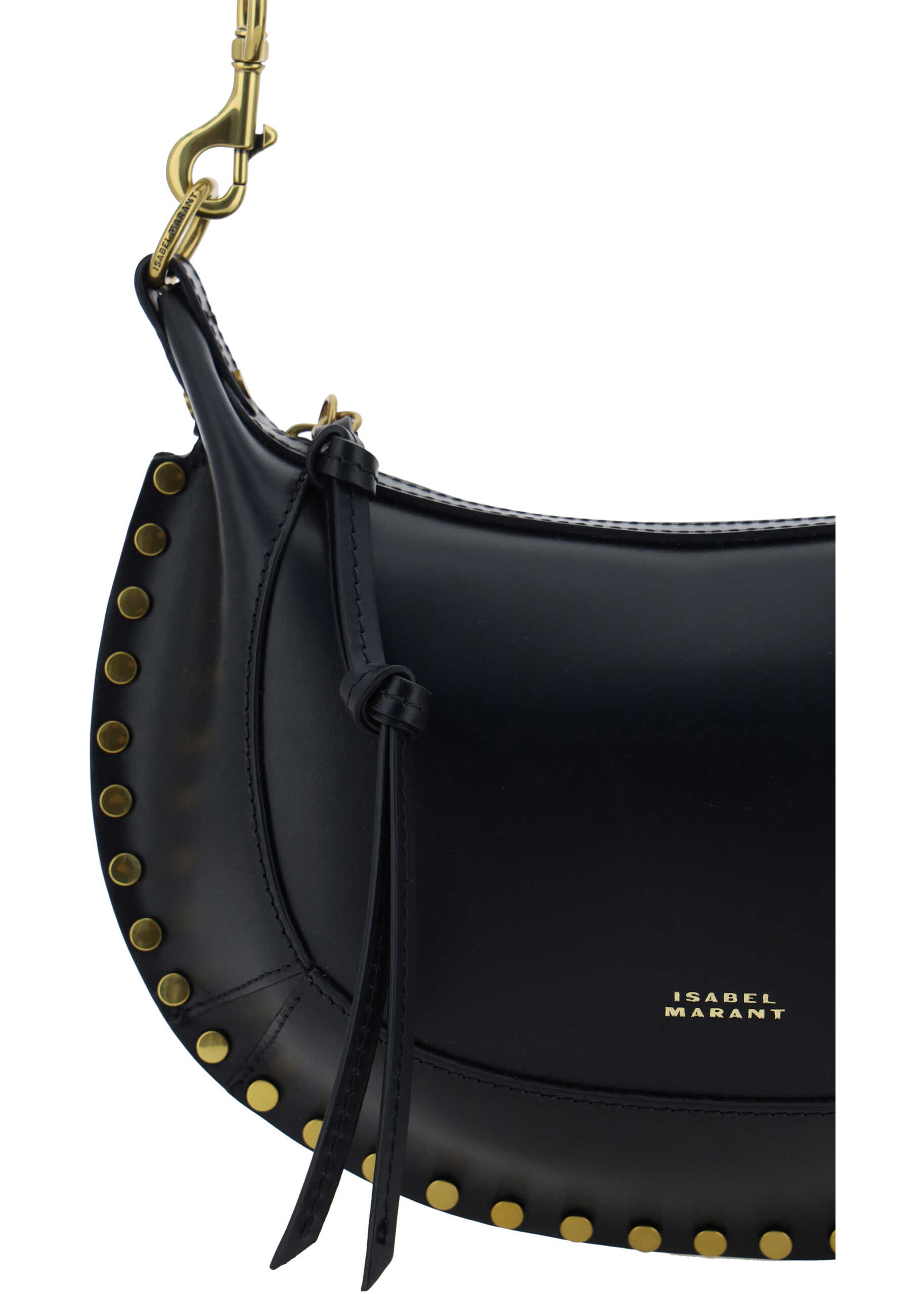 Calfskin Oskan Moon Shoulder Bag by Isabel Marant, adjustable and removable shoulder strap, top closure by zipper, iconic brand monogram pressed on the front, flat studs applied on the profiles, single internal compartment.