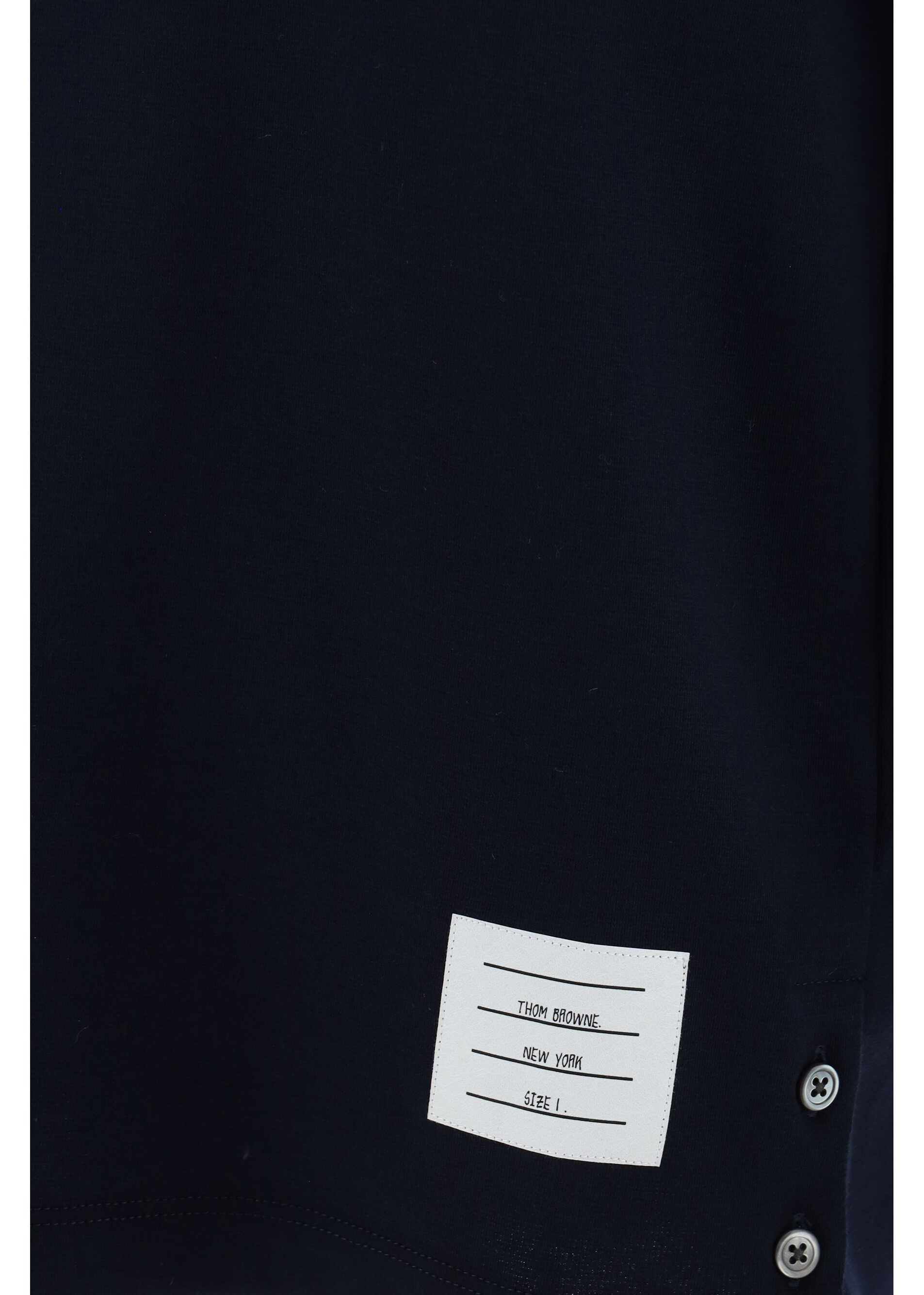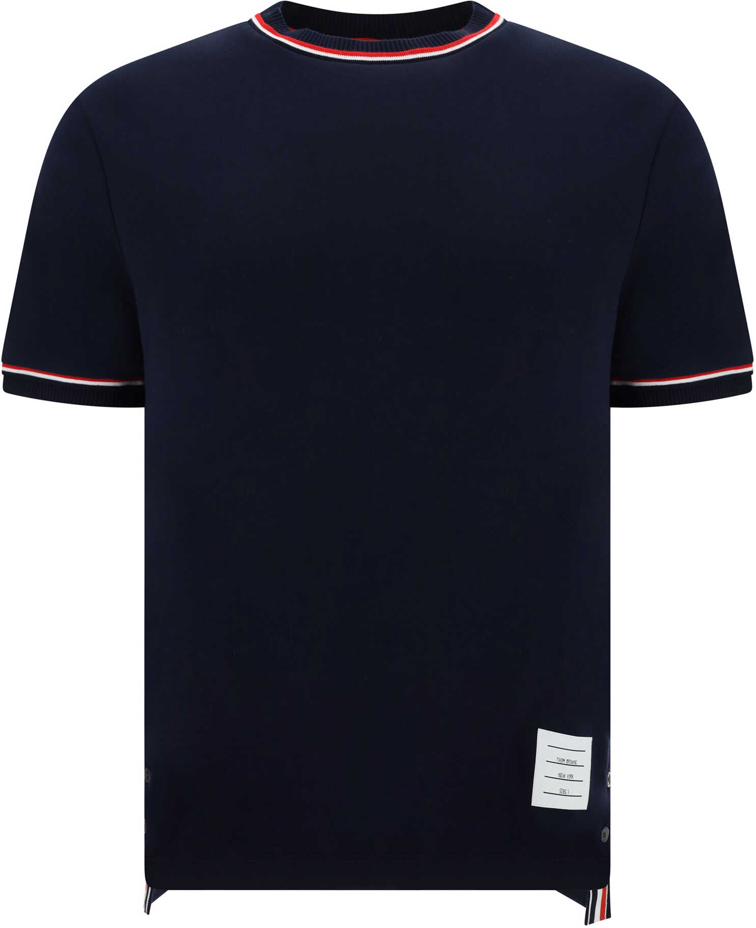 Cotton T-Shirt by Thom Browne, ribbed crew neck embellished with the brand's iconic multicolored bands, two side slits with button closure, monochrome design, patch with the brand's iconic monogram applied to the front, regular fit.