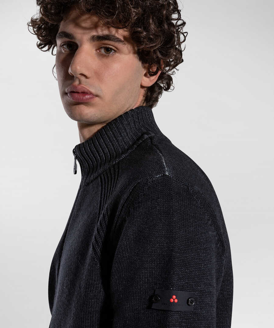 Stay warm and stylish with the Peuterey Cardigan. Made with 100% pure wool tricot and acid-etched dyeing, this cardigan features a high-neck, full double-slider central zip, jersey bottom, collar and cuffs, and a logo holder band on the arm. Suitable for leisure and outdoor activities during mid-season, this cardigan combines authentic character and functionality. Hand wash and gently dry clean with tetrachlorethylene for best results. Available in Anthracite color, Regular fit, and Men's sizes. Order now and enjoy the comfort and style of Peuterey!