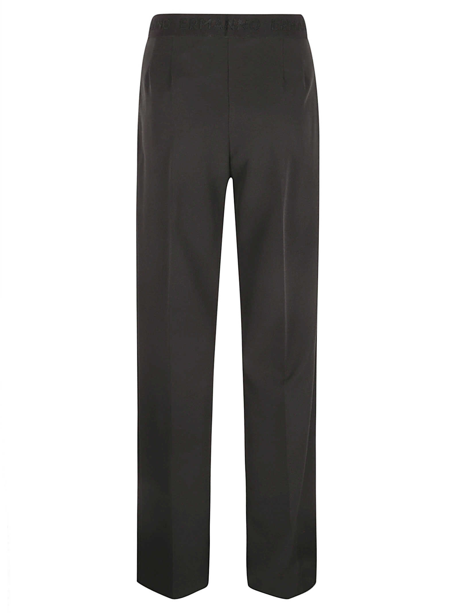 pressed-crease straight-leg trousers from ERMANNO FIRENZE featuring pressed crease, elasticated waistband, two side inset pockets, black, stretch-design, straight leg and high waist.