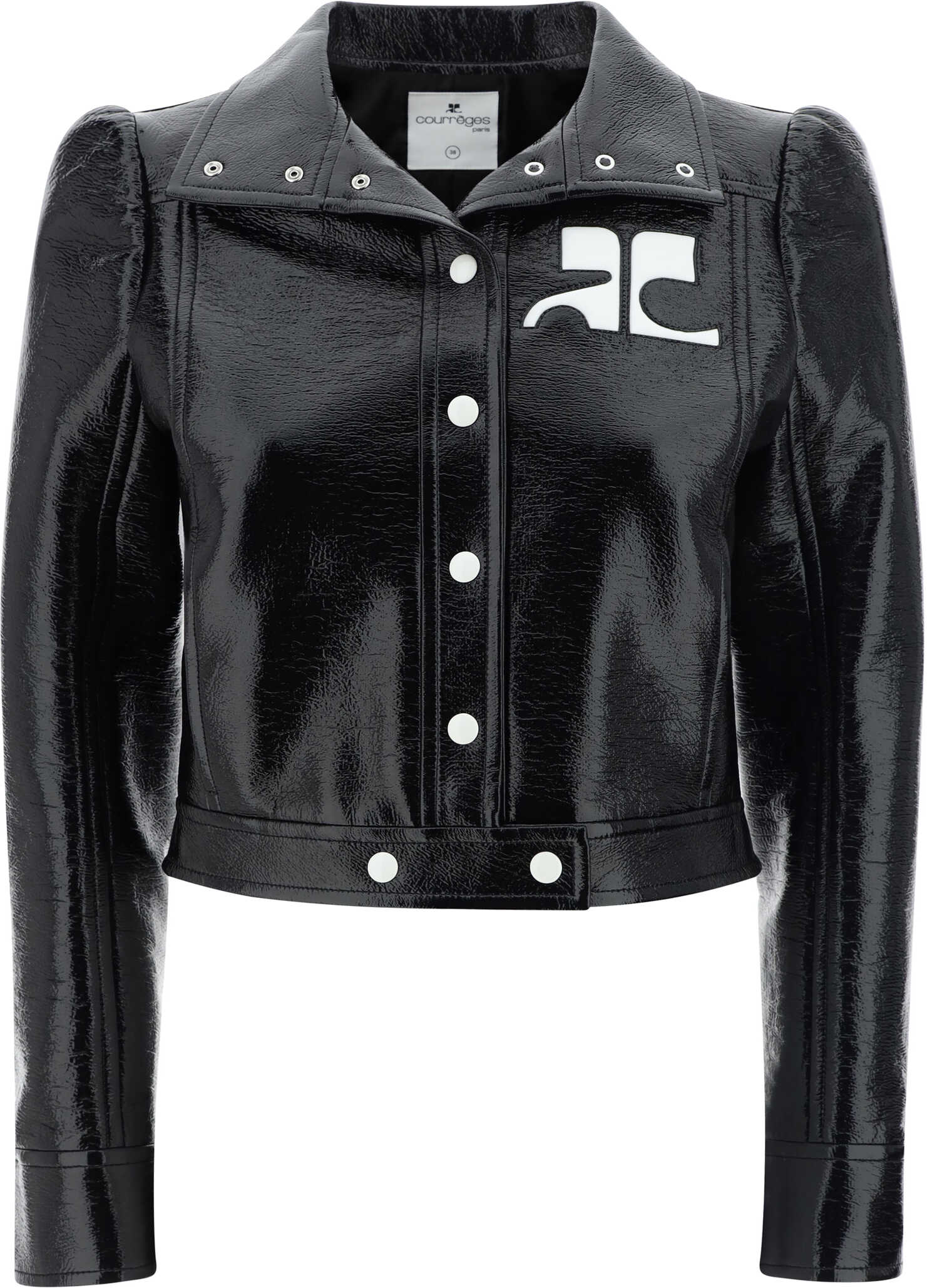 Courrèges' Cotton Jacket combines boldness and contemporary style in a cropped model with a leather-effect design. Featuring a high collar and front snap-button closure, it has two side welt pockets for discreet functionality. The iconic logo on the front adds a distinctive and refined touch. Perfect for those looking for a jacket with a bold, modern character.