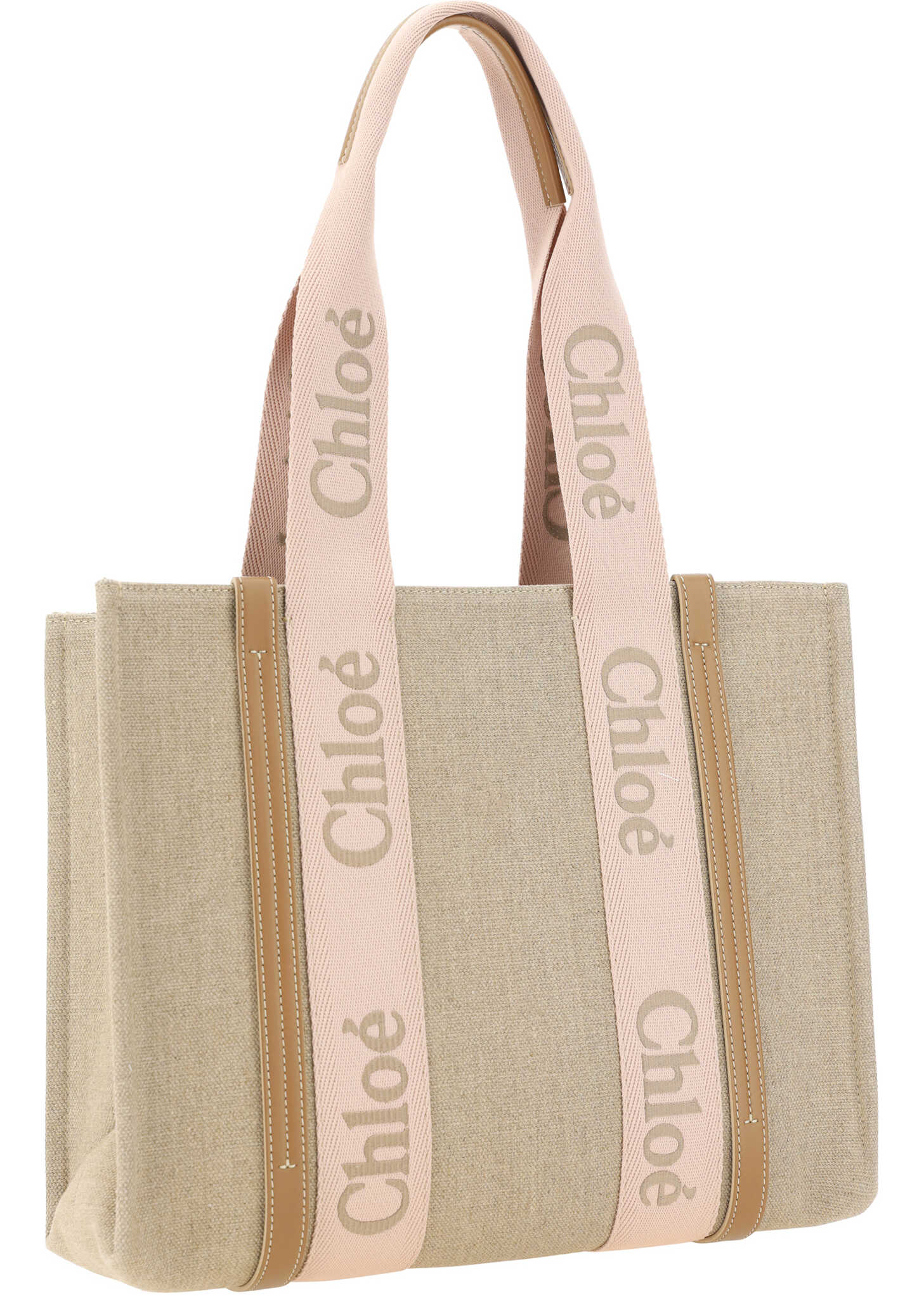 Chloé's Woody Shoulder Bag by Chloé is crafted from elegant linen with a refined design and distinctive details. Double flat handles are enhanced by contrasting leather extensions on the side panels, while the brand's iconic monogram adds a touch of class. Inside, a welt pocket offers practicality, while the interior hidden magnetic button closure provides security without compromising style.