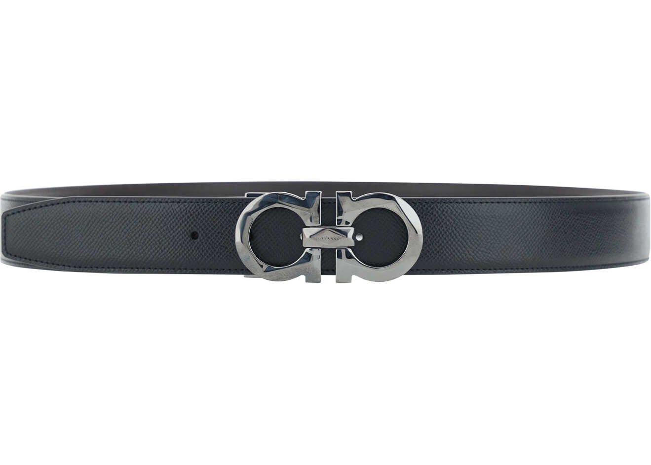 Calfskin Reversible Belt by Ferragamo, monochrome double-face design, metal buckle with iconic Gancini logo, grained leather design. Thickness: 3 cm.