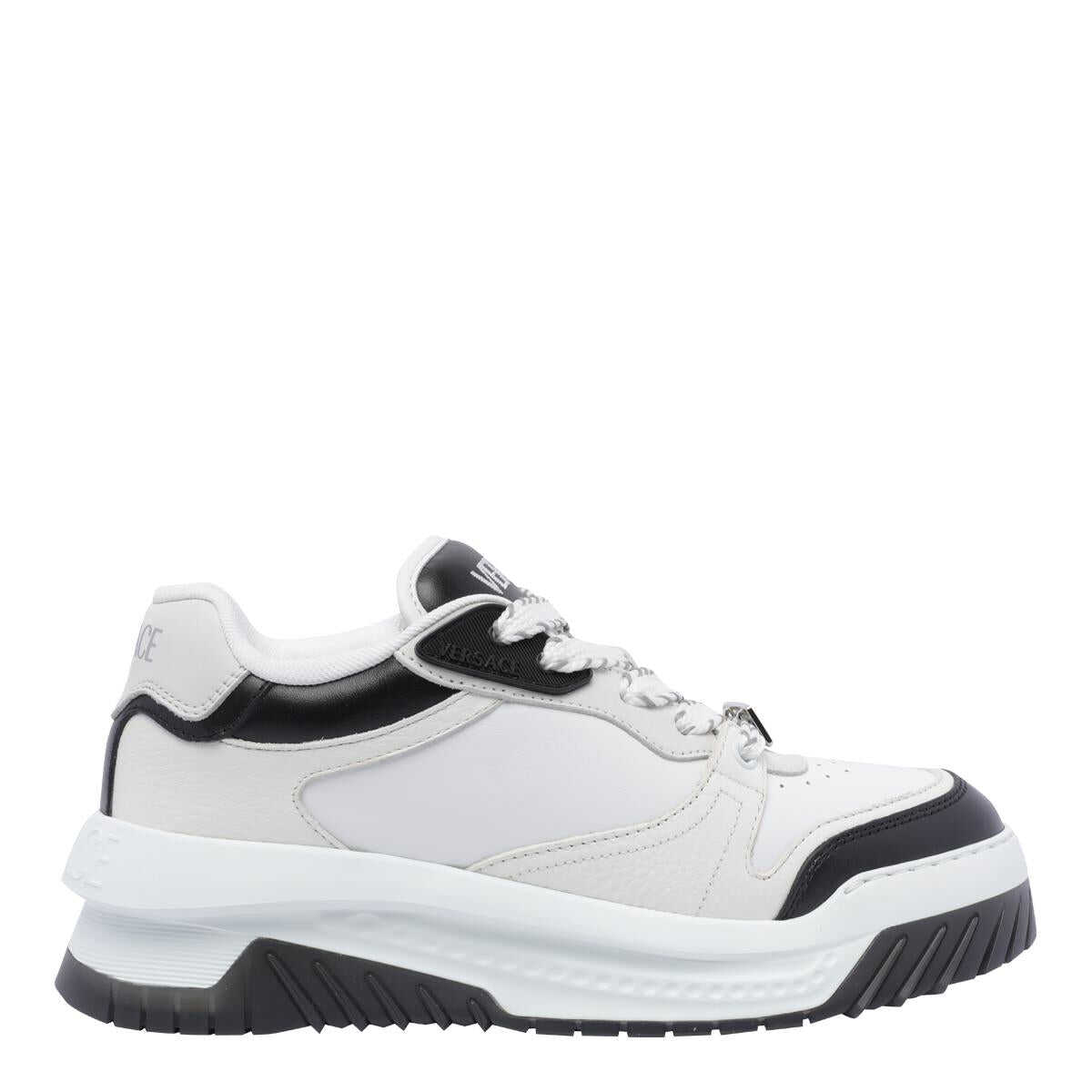 Versace Black And White Odissea Sneakers, Round Toe, Leather Upper, Laces Closure, Logo On The Back, EU SIZE (IT)