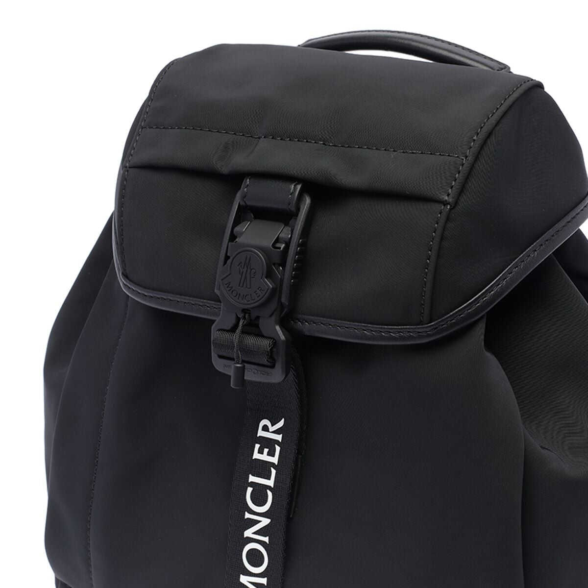black technical jersey leather trim foldover top with buckle-strap fastening top drawstring fastening single flat top handle adjustable shoulder straps front zip-fastening pocket main compartment internal logo patch internal slip pocket full lining This piece comes complete with a protective dust bag.