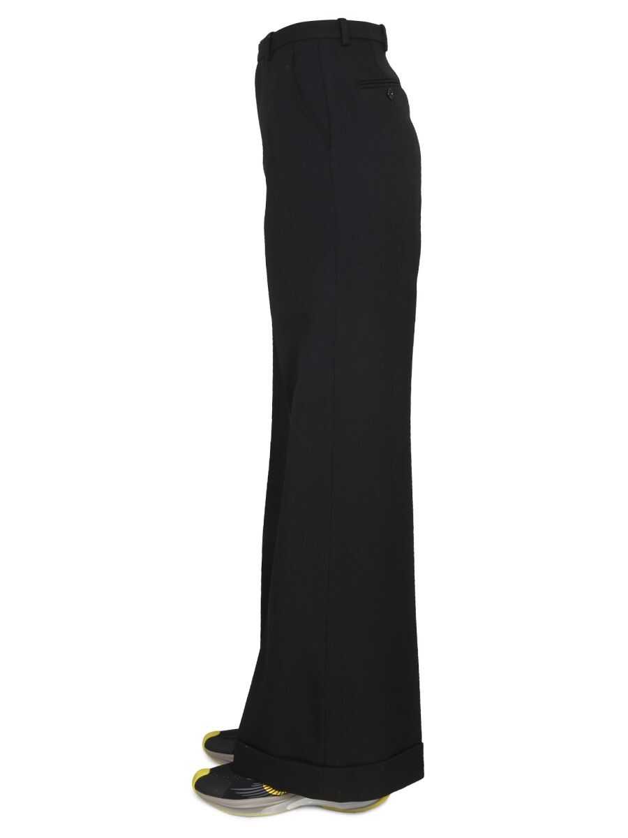 Gucci's wide-leg pants crafted in black wool. Featuring front button / hook-and-eye / zip closure, belt loops, side pockets, back welt pocket and central pinces. Turned-up hem. Unlined interior.