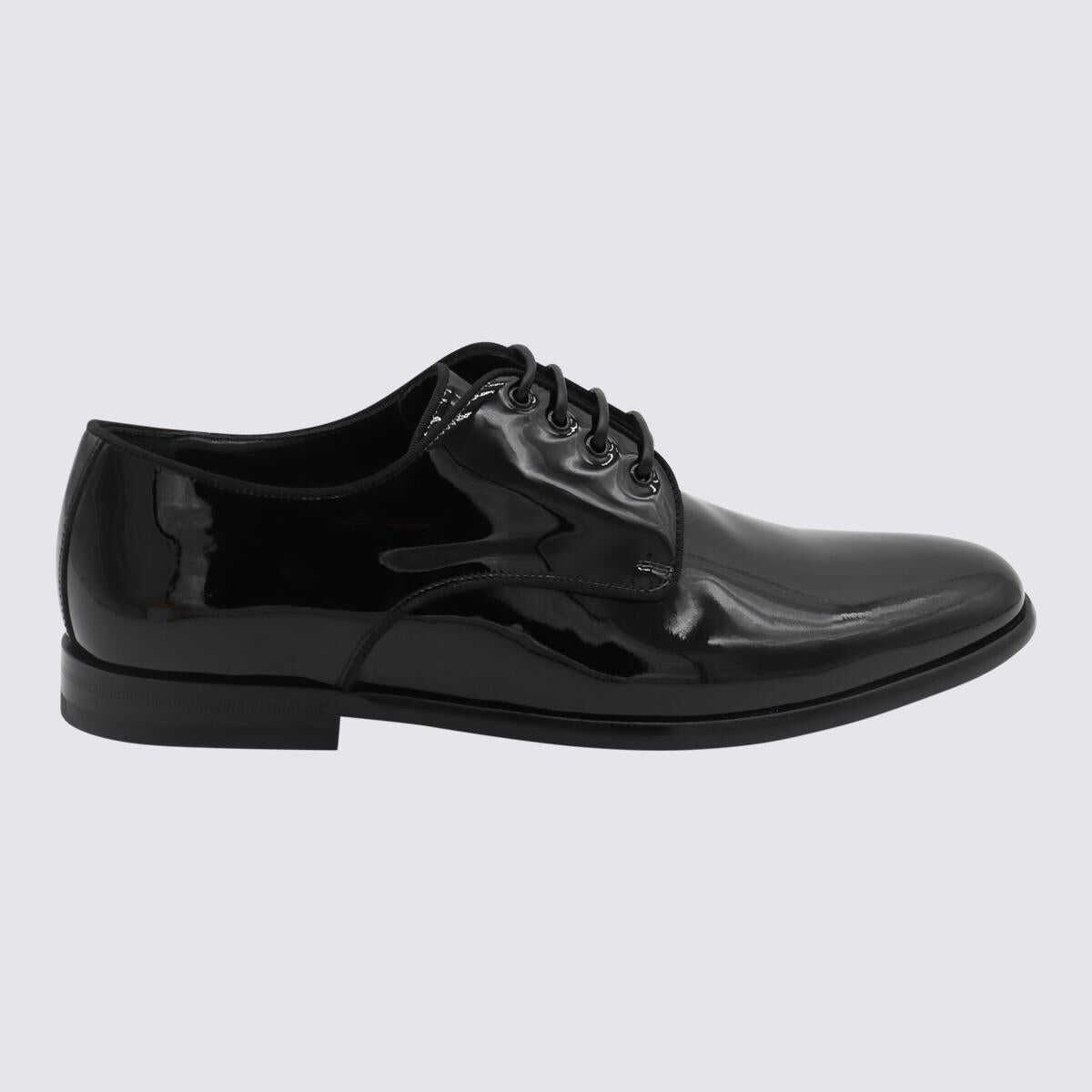 Black leather lace up shoes from Dolce&Gabbana featuring almond toe, front lace-up fastening, polished finish and low block heel.
