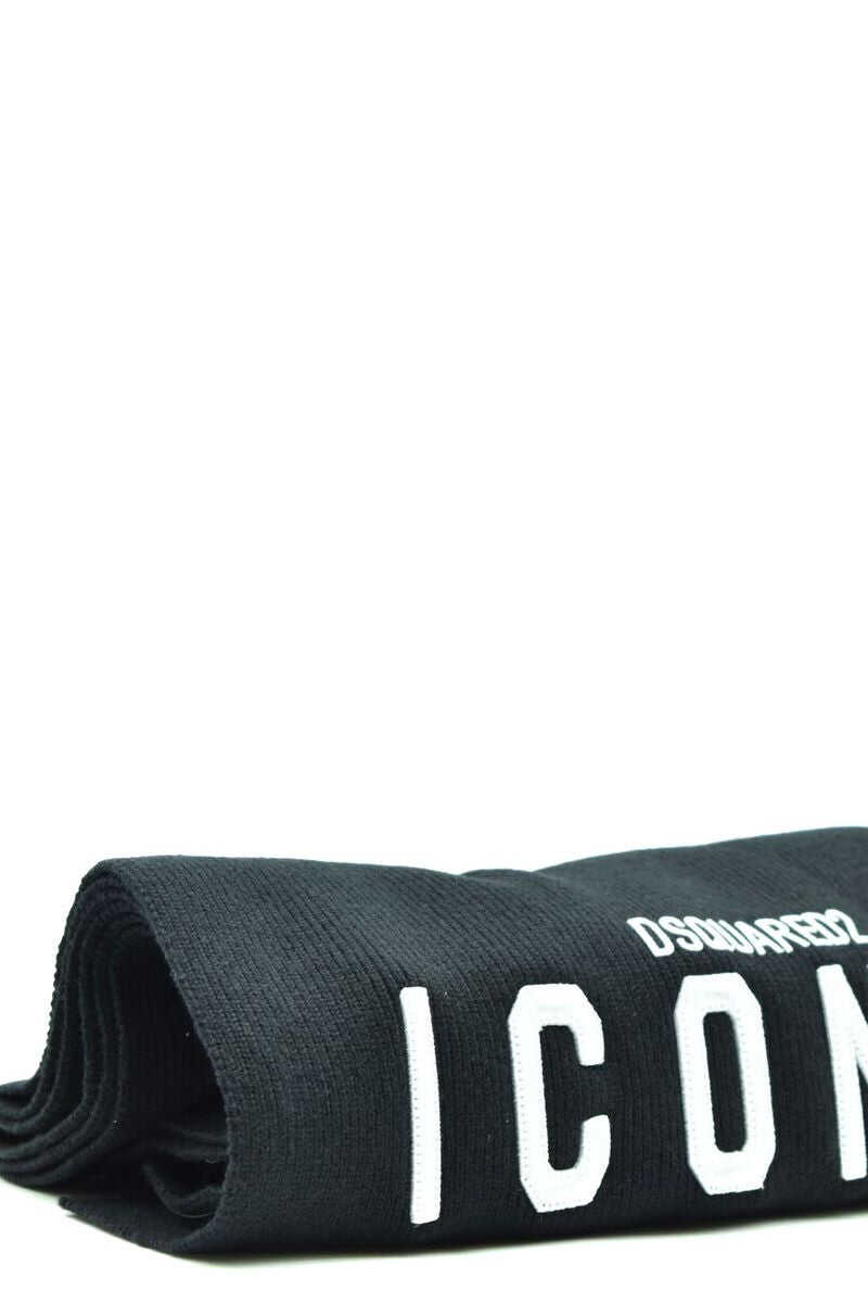 Black/white wool scarf featuring embroidered logo to the front, ribbed knit and two-tone design. Colour: black/white