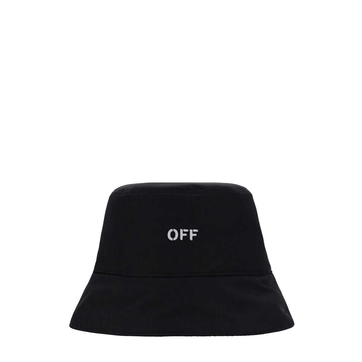 Bucket Hat by Off-White, monochrome pattern, iconic brand monogram printed in contrast on the front.COLOR: BlackMATERIAL 100% PAMADE IN ITALY