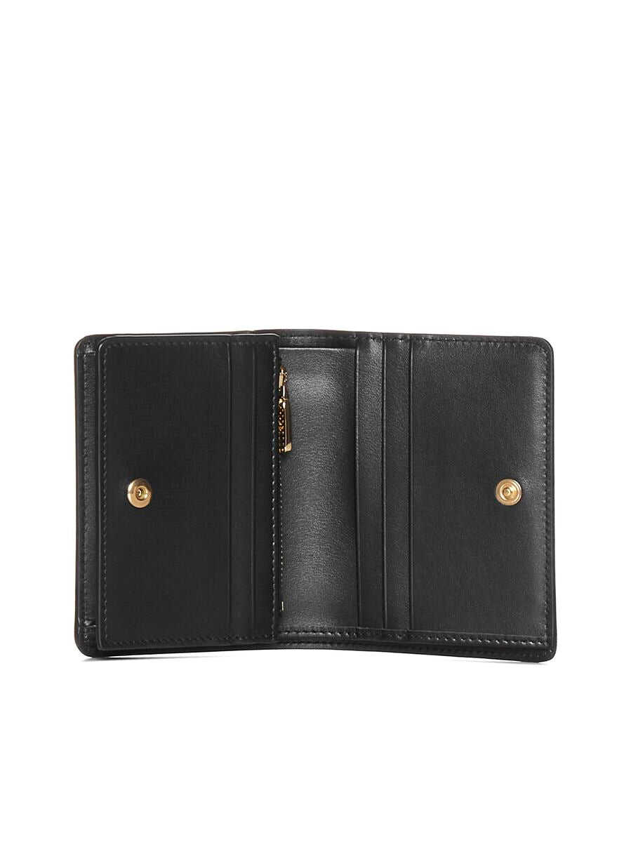 Black leather wallet from Dolce&Gabbana featuring gold-tone hardware, front logo plaque, bi-fold design, concealed press-stud fastening, internal card slots, internal zip-fastening pocket and internal note compartments.