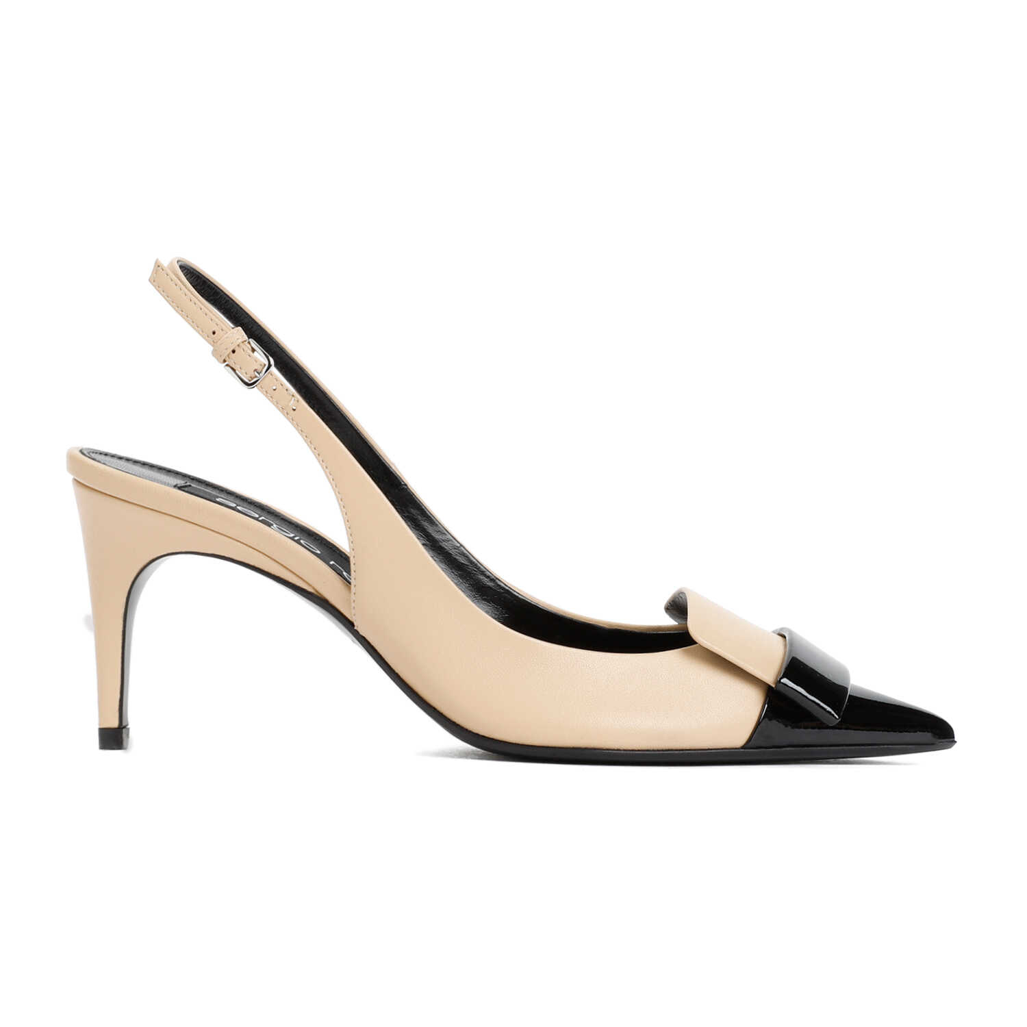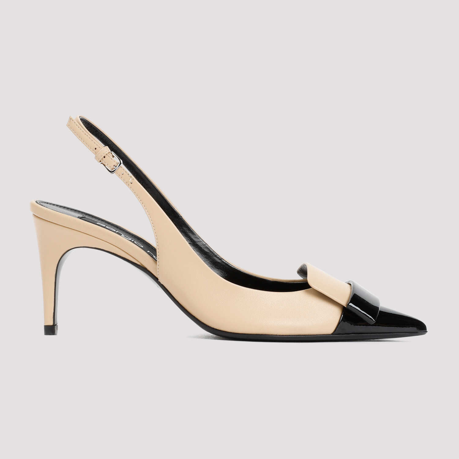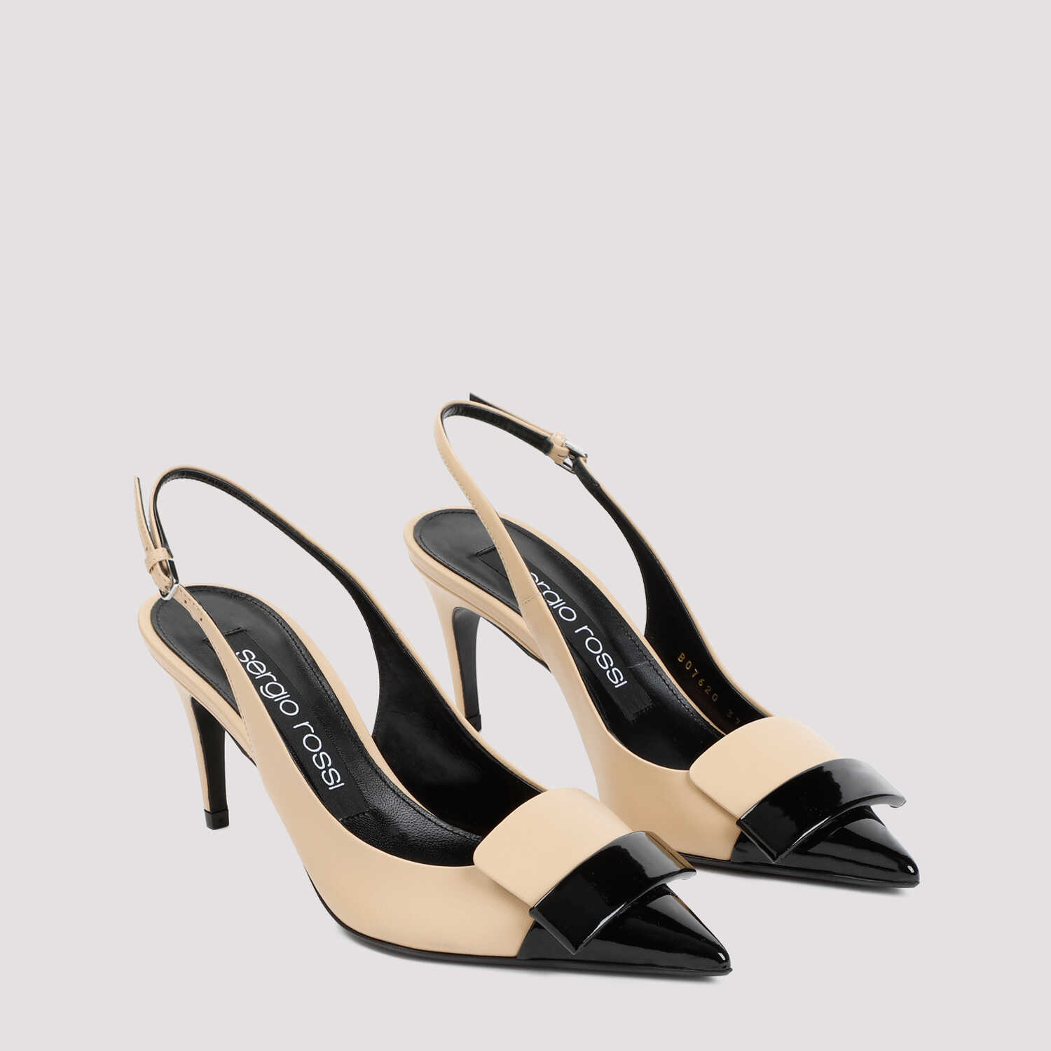 Elevate your style with these stunning Sergio Rossi nude and neutral slingback pumps. Crafted with a luxurious blend of lamb leather and patent calf leather, featuring a pointed toe, adjustable ankle strap, and a chic stiletto heel. Perfect for a sophisticated and elegant look. Add a touch of glamour to any outfit with these exquisite heels.