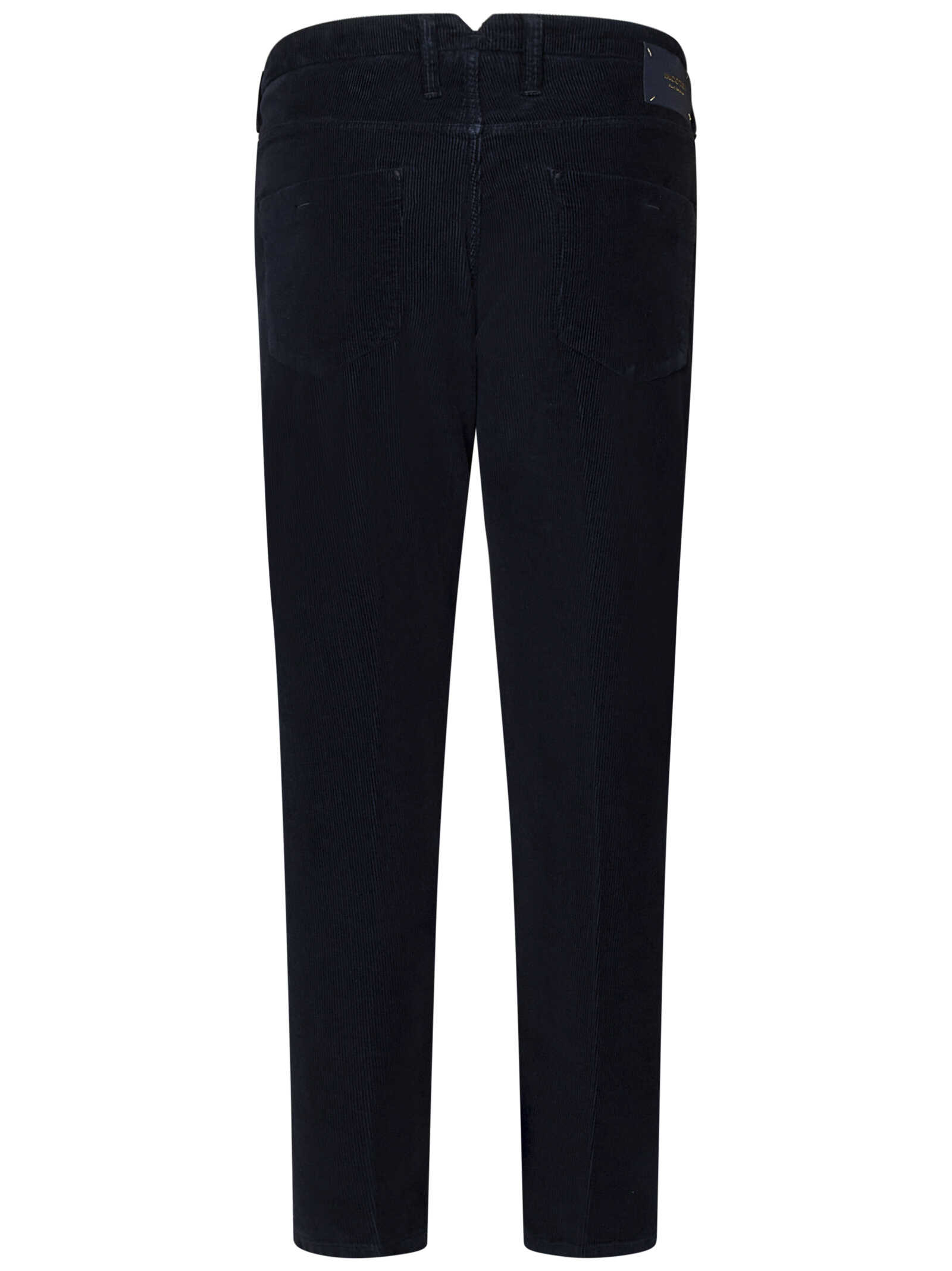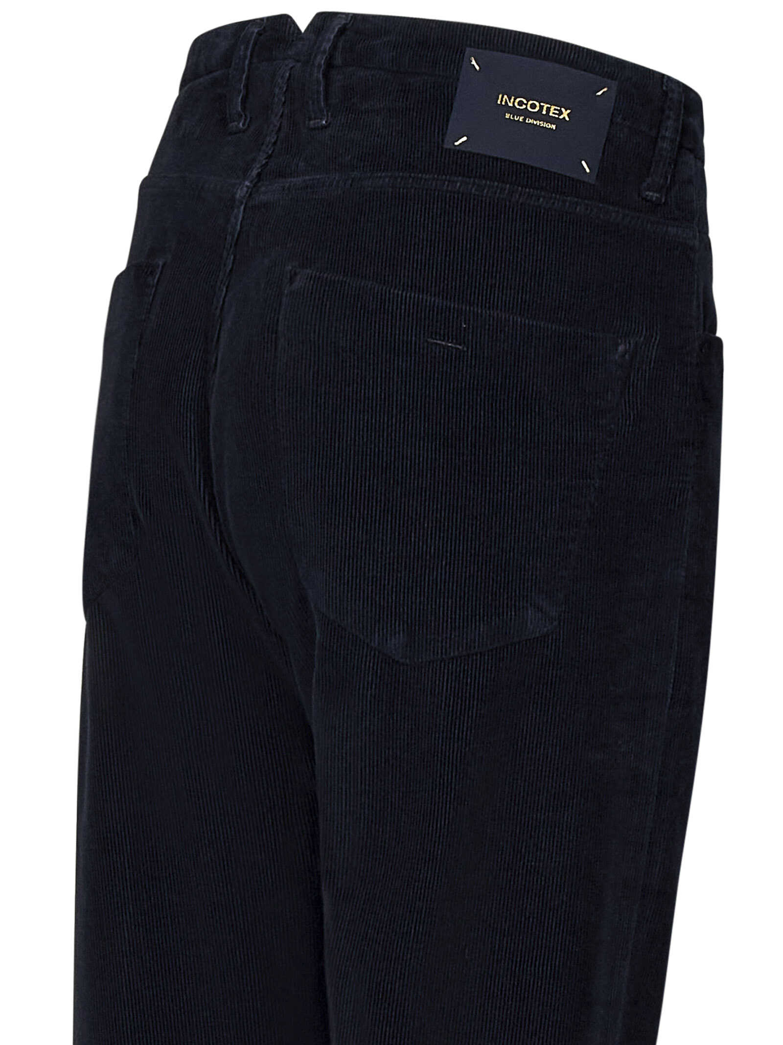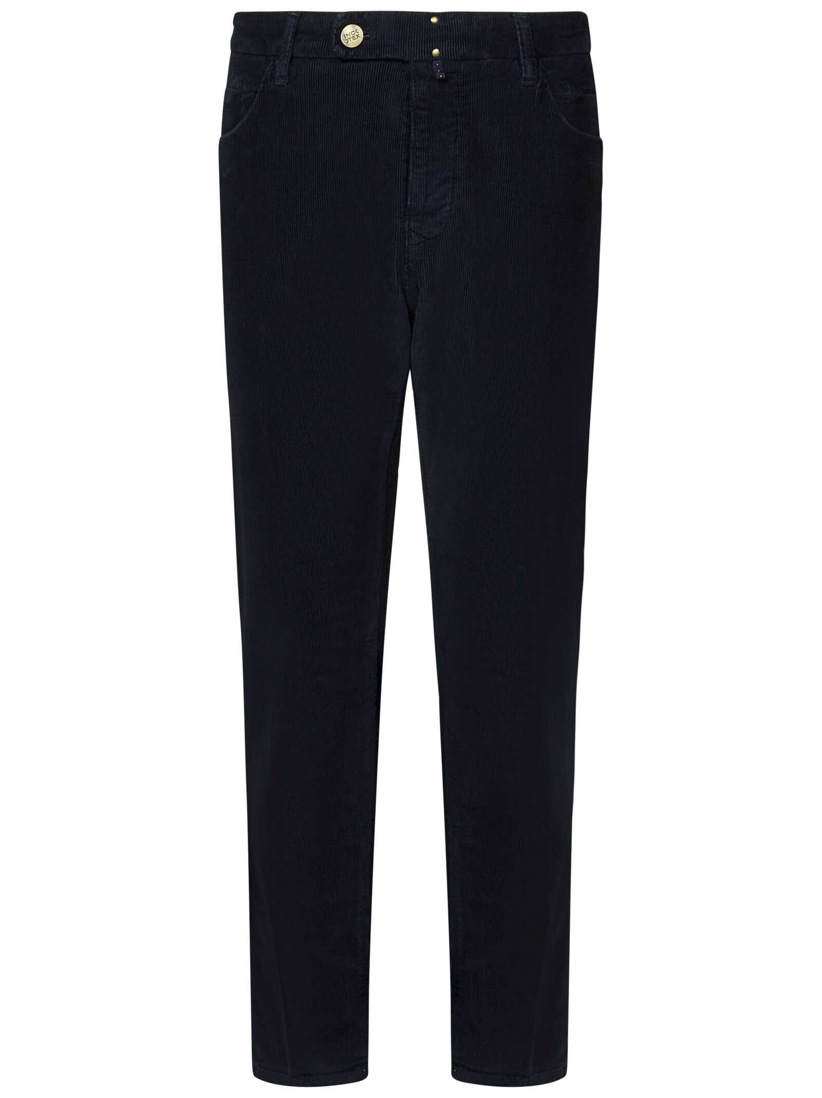 Slim-fit blue stretch cotton and cashmere corduroy trousers.