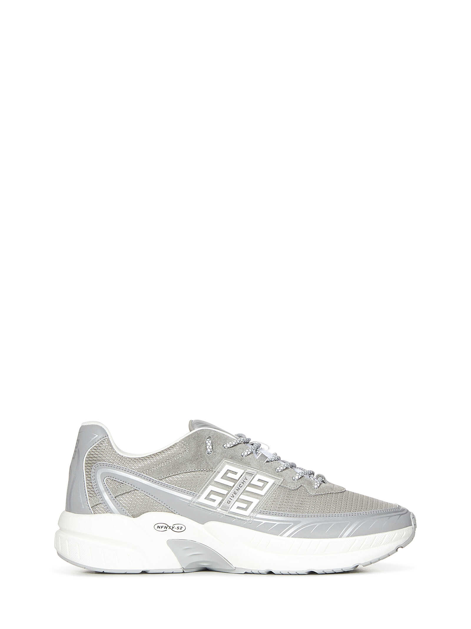 NFNTY-52 light grey suede and mesh running sneakers.